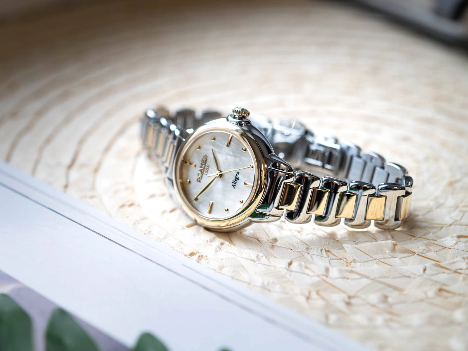 Roamer Allegra 977847 47 20 20 to stylowy i funkcjonalny damski zegarek, który doskonale łączy klasyczną elegancję z nowoczesnym designem. Model ten wyróżnia się ponadczasowym zestawieniem srebra i złota, które podkreślają wyrafinowany charakter czasomierza. Zegarek pochodzi z prestiżowej kolekcji Roamer Allegra, znanej z wyjątkowego połączenia luksusu, precyzji i codziennej praktyczności. Srebrna koperta wykonana z wysokiej jakości stali szlachetnej, ozdobiona jest błyszczącym bezelem w kolorze złota, co nadaje mu subtelny i kobiecy wygląd. Jego centralnym punktem jest elegancka, biała tarcza wykonana z masy perłowej, która przyciąga uwagę swoją delikatnością. Złote indeksy i wskazówki pięknie kontrastują z jasnym tłem, dodając zegarkowi klasy i przejrzystości. Tarcza zabezpieczona jest trwałym szkłem szafirowym, odpornym na zarysowania, co zapewnia nienaganny wygląd przez długi czas. Model ten działa na niezawodnym mechanizmie kwarcowym, zasilanym wymienną baterią, co gwarantuje precyzję i wygodę użytkowania. Dzięki zastosowaniu sprawdzonej technologii czasomierz jest praktyczny i łatwy w utrzymaniu. Uzupełnieniem zegarka jest wyrafinowana bransoleta w srebrno-złotej kolorystyce, również wykonana z trwałej stali szlachetnej. Bransoleta zakończona została dwudzielnym zapięciem motylkowym, które zapewnia bezpieczeństwo oraz komfort noszenia. Roamer Allegra 977847 47 20 20 to nie tylko precyzyjne narzędzie do odmierzania czasu, ale także elegancki dodatek, który doskonale uzupełni każdą stylizację. Zapakowany w oryginalne pudełko producenta, idealnie sprawdzi się jako wyjątkowy prezent dla kobiety ceniącej styl i funkcjonalność.