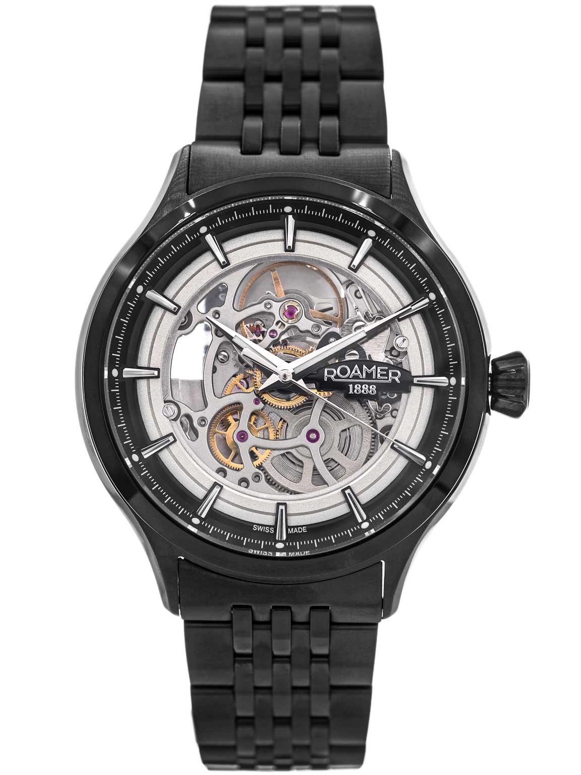- Automatyczny Zegarek Męski Roamer 101984 45 85 10 czarny na bransolecie.