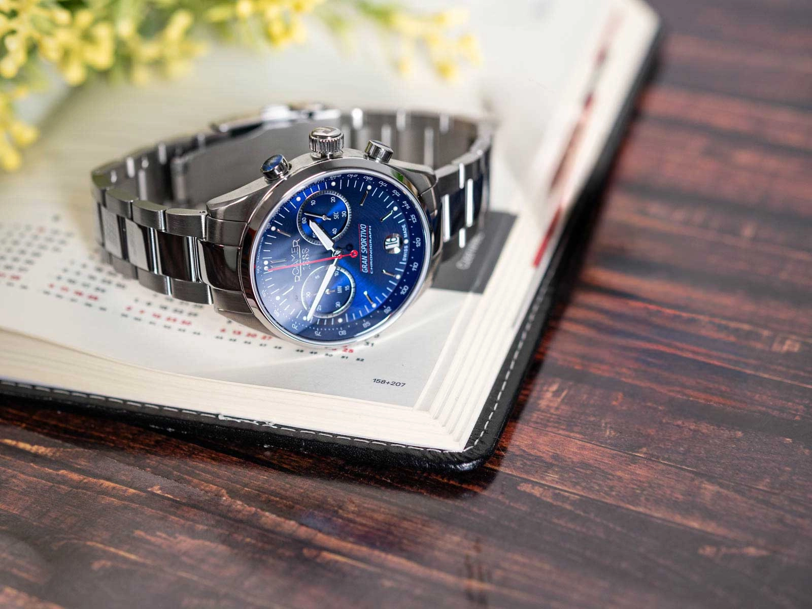 Roamer Gran Sportivo 978818 41 45 20 to wyjątkowy zegarek męski, który łączy luksusowy styl, perfekcyjne wykonanie oraz niezawodną funkcjonalność. Jego wyrazista srebrna koperta, wykonana z najwyższej jakości stali szlachetnej, podkreśla trwałość i elegancję, która doskonale odpowiada potrzebom współczesnego mężczyzny. Minimalistyczne linie i precyzyjne detale nadają mu ponadczasowy charakter. Koperta współgra z gustowną, srebrną bransoletą wykonaną z polerowanej i szczotkowanej stali, która dzięki perfekcyjnej obróbce zachwyca elegancją i trwałością. Dla zapewnienia maksymalnej wygody i bezpieczeństwa, zastosowano tu praktyczne zapięcie motylkowe z dodatkowymi blokadami, które minimalizują ryzyko przypadkowego otwarcia. Model Gran Sportivo doskonałym wyborem zarówno na formalne spotkania, jak i codzienne sytuacje. Centralnym punktem zegarka jest tarcza w głębokim, granatowym kolorze, która przyciąga uwagę swoją intensywnością i eleganckim wykończeniem. Srebrne wskazówki oraz indeksy kontrastują z ciemnym tłem, co gwarantuje doskonałą czytelność. Na tarczy znalazły się również subtelne akcenty, takie jak dyskretne logo marki Roamer, które dodaje klasy, pozostając jednak w harmonii z całością projektu.
