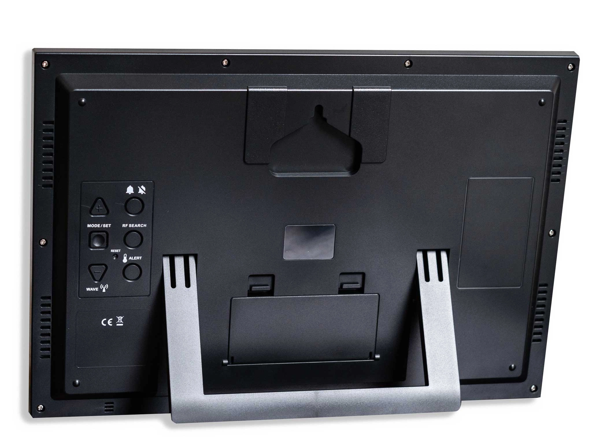 - Mechanizm: kwarcowy - zasilany bateriami. Jednostka główna 6xLR6 AA, sonda zewnętrzna 2xLR3 AA (brak w zestawie)
