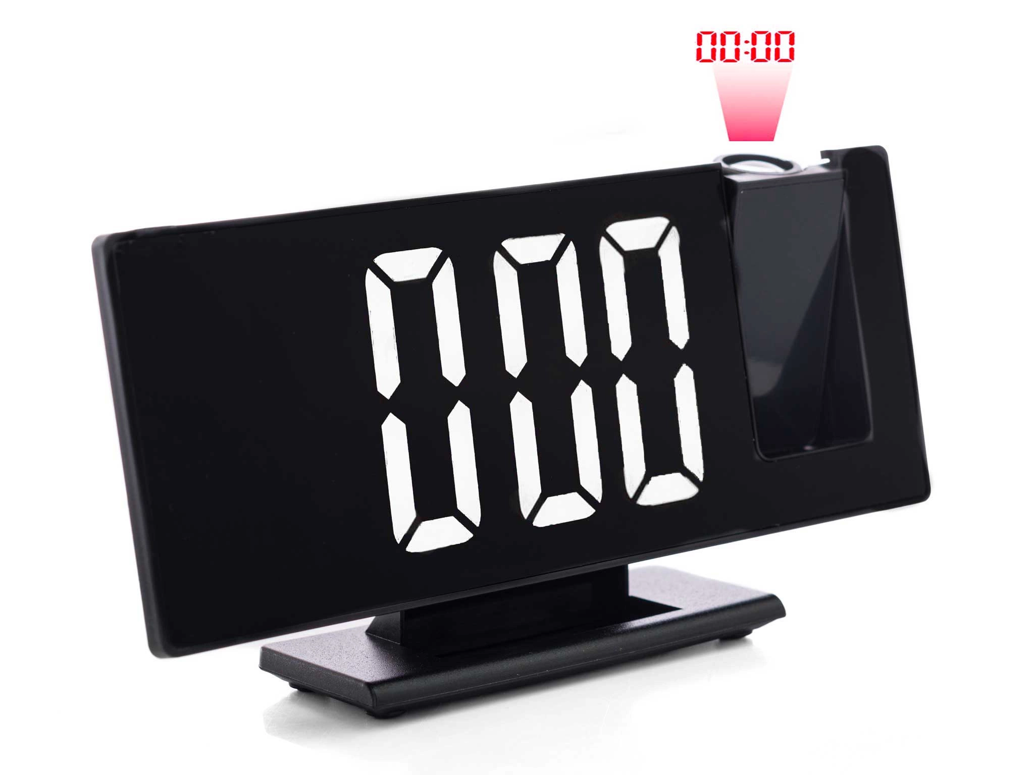 - Budzik JVD SB3618.3 - czarny. Sterowany radiowo. Wyposażony w termometr, kalendarz, rzutnik i alarm.