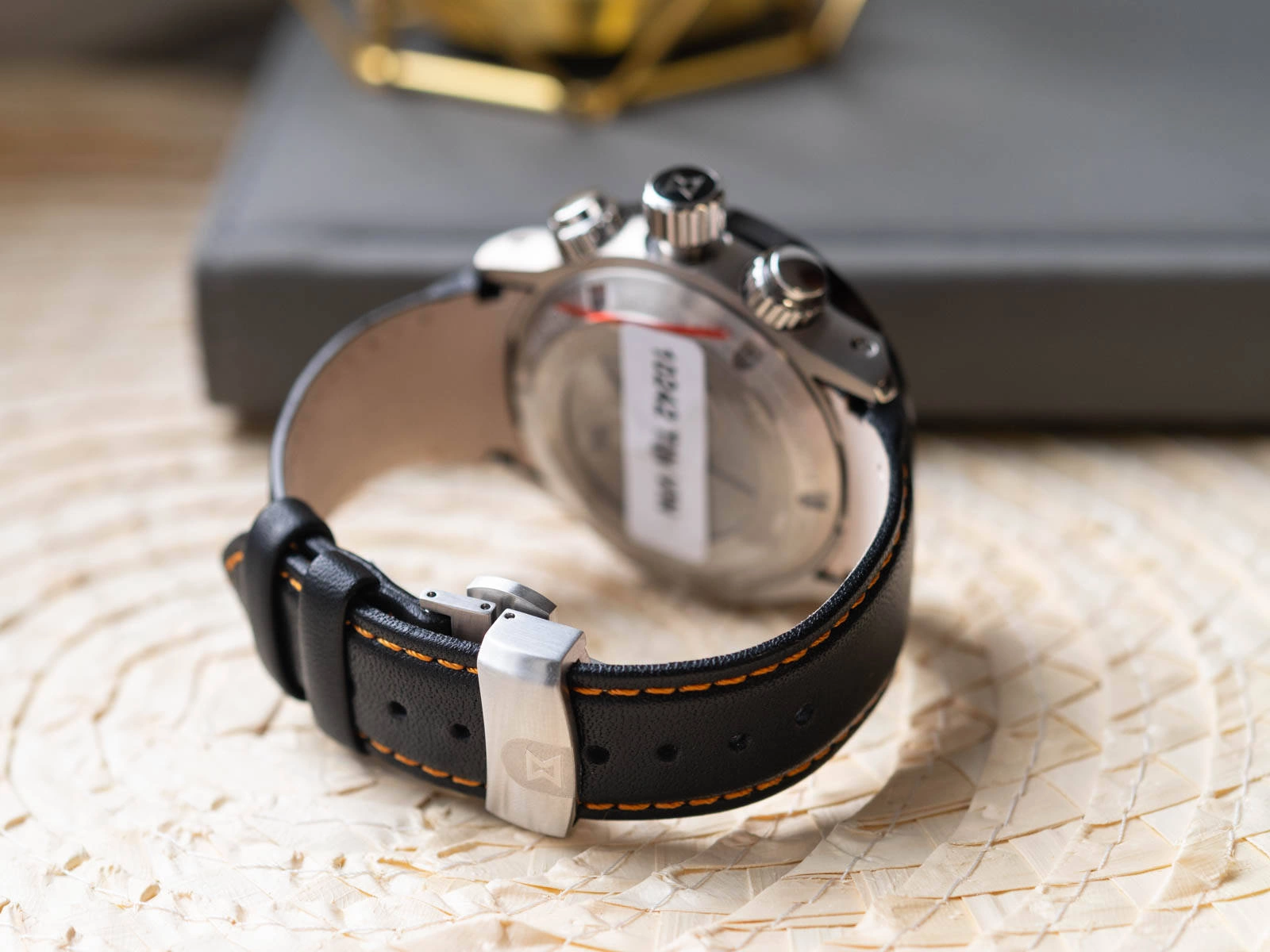 Tarcza chroniona jest przez szkło szafirowe, znane z odporności na zarysowania i doskonałej przejrzystości. Dzięki temu zegarek doskonale radzi sobie nie tylko w warunkach wodnych, ale również w sytuacjach, gdzie jest narażony na trudne warunki, takie jak piasek, błoto czy intensywne użytkowanie. Czarny pasek ze skóry naturalnej, wykończony zapięciem motylkowym z wysokiej jakości stali szlachetnej, zapewnia wygodę noszenia oraz solidność, która odpowiada klasie zegarka. Edox 10242 TIN VIN CO-1 Chronograph to kwintesencja elegancji, trwałości i wszechstronności. Idealny dla osób, które chcą czerpać pełnię korzyści z technologicznie zaawansowanego, stylowego czasomierza, niezależnie od tego, czy udają się na ekskluzywne spotkanie, czy podejmują się ekstremalnych wyzwań. Zapakowany w stylowe, oryginalne pudełko producenta, stanowi doskonały pomysł na prezent dla miłośników zegarmistrzowskiego kunsztu, pasjonatów eksploracji podwodnych głębin i entuzjastów przygód.