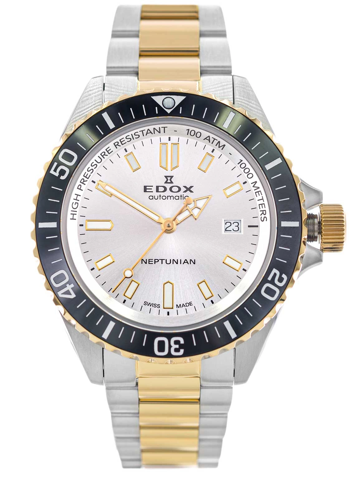 - Automatyczny Zegarek Męski Edox 80120 357JM AID srebrno-złoty, posiada funkcję datownika oraz neobrite. Zegarek wodoszczelny.