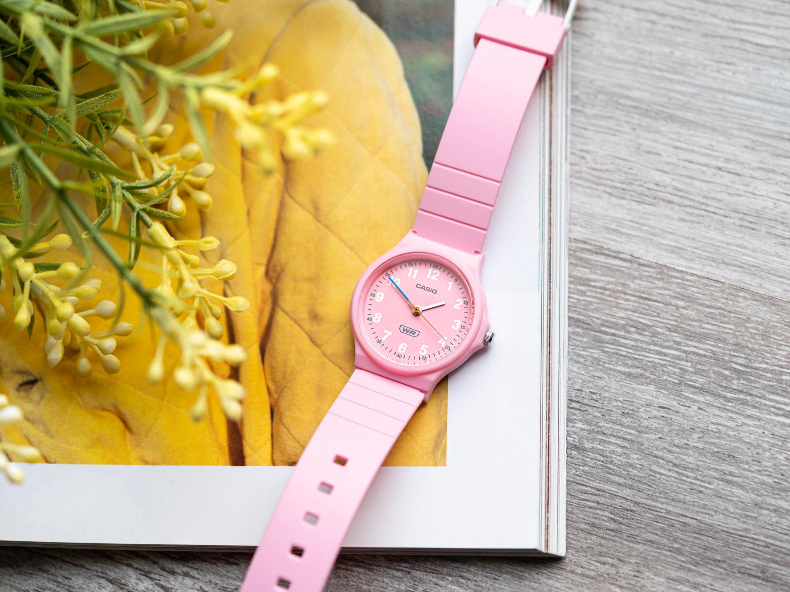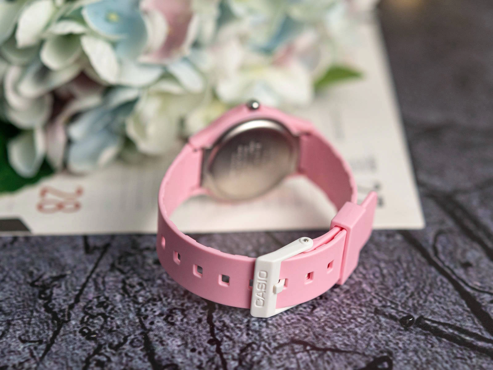 - Zegarek Damski Casio LQ-24B 4BEF różowy na pasku.