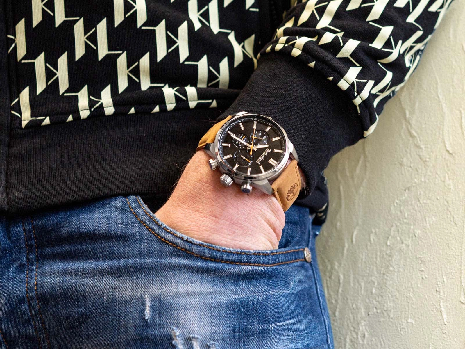 - Zegarek Męski Timberland TDWGF0028701 brązowy na pasku, posiada funkcję rozbudowanego datownika oraz neobrite.