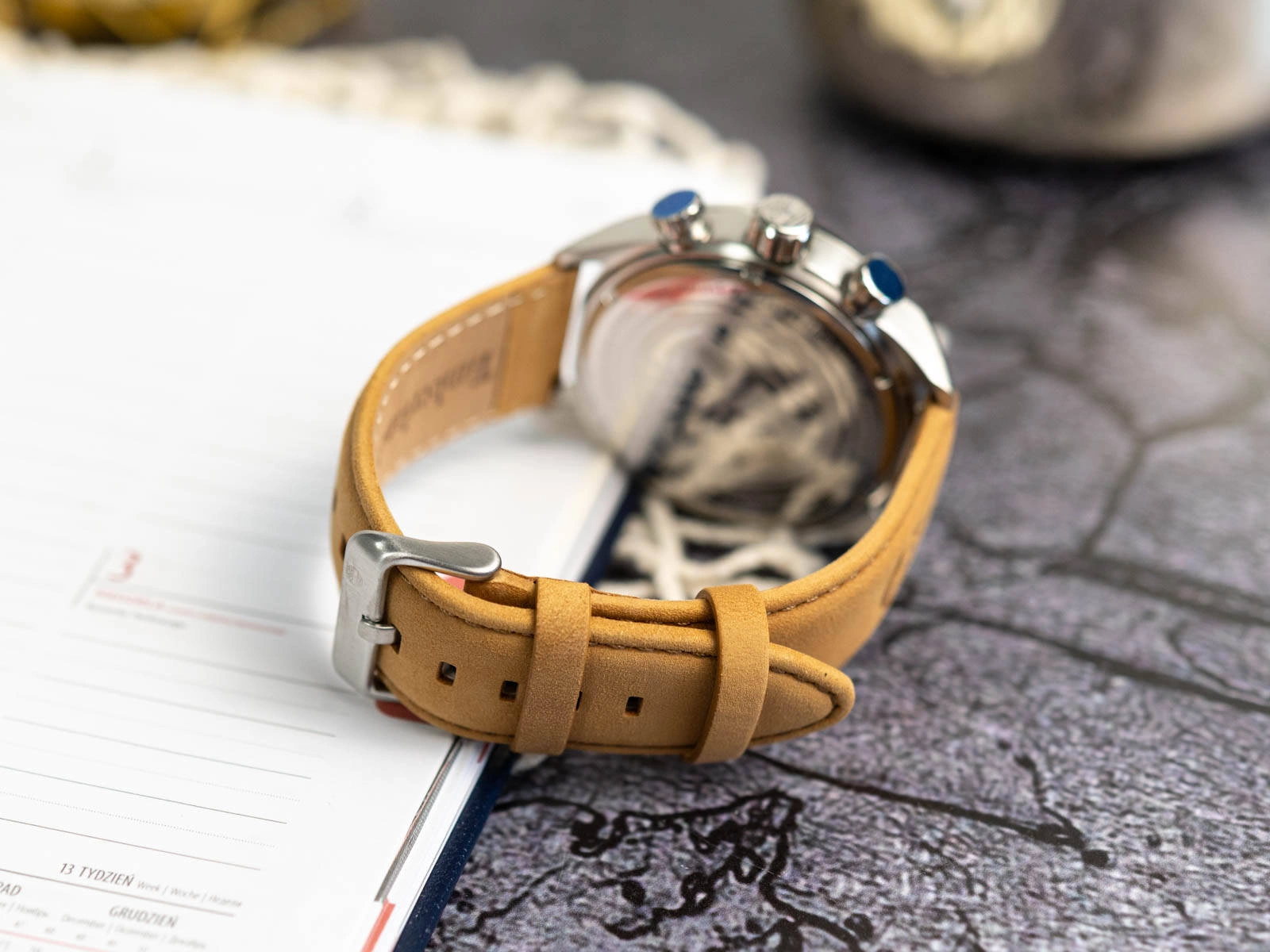 - Pasek: skórzany.