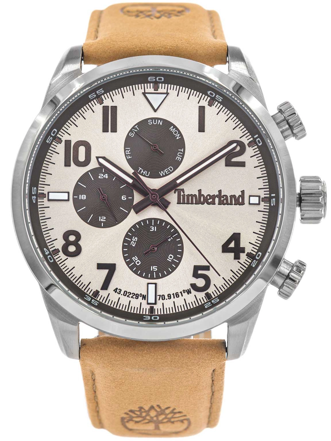 - Zegarek Męski Timberland TDWGF0009503 brązowy na pasku, posiada funkcję rozbudowanego datownika oraz neobrite.