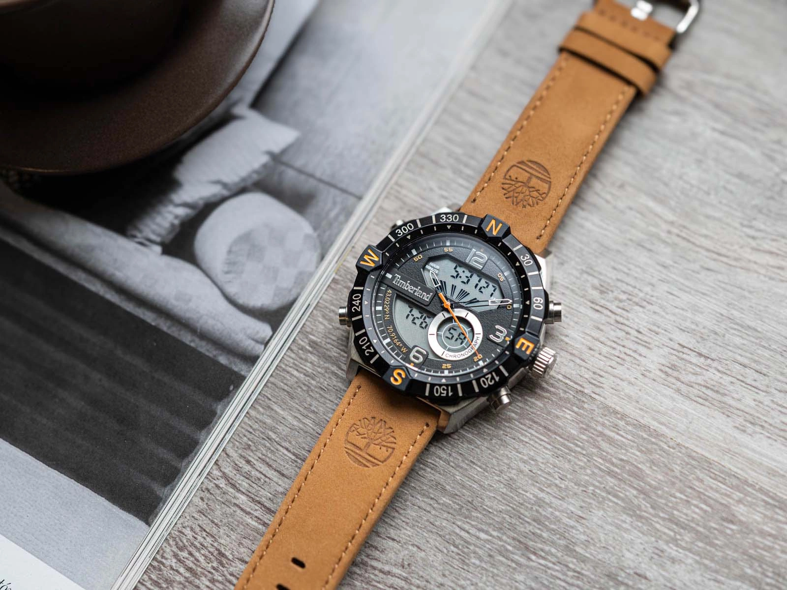 - Zegarek Męski Timberland TDWGD2103202 brązowy na pasku, posiada funkcję datownika, stopera, alarm, podświetlenie oraz neobrite.