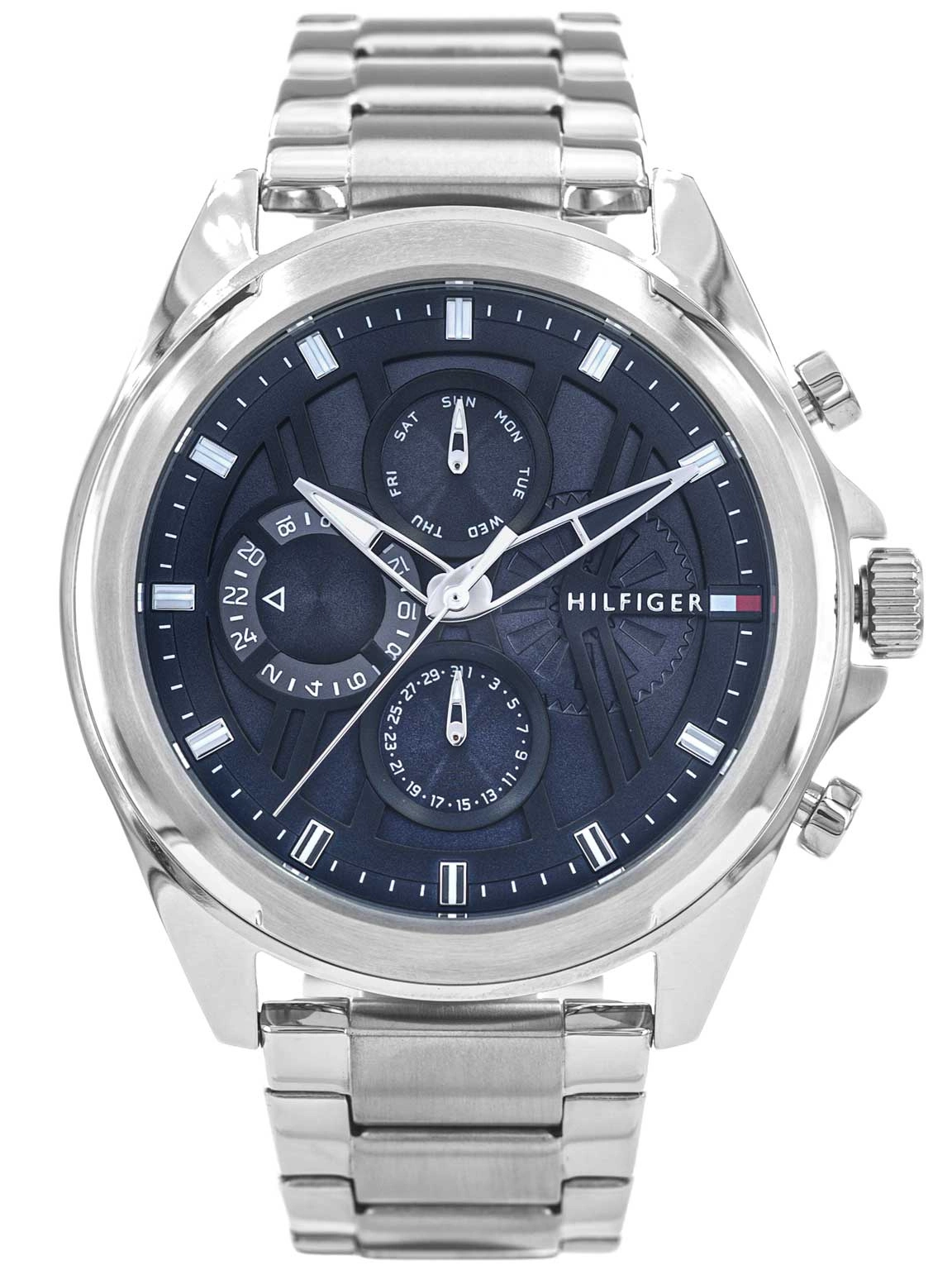 - Zegarek Męski Tommy Hilfiger 1710656 srebrny na bransolecie, posiada funkcję datownika.