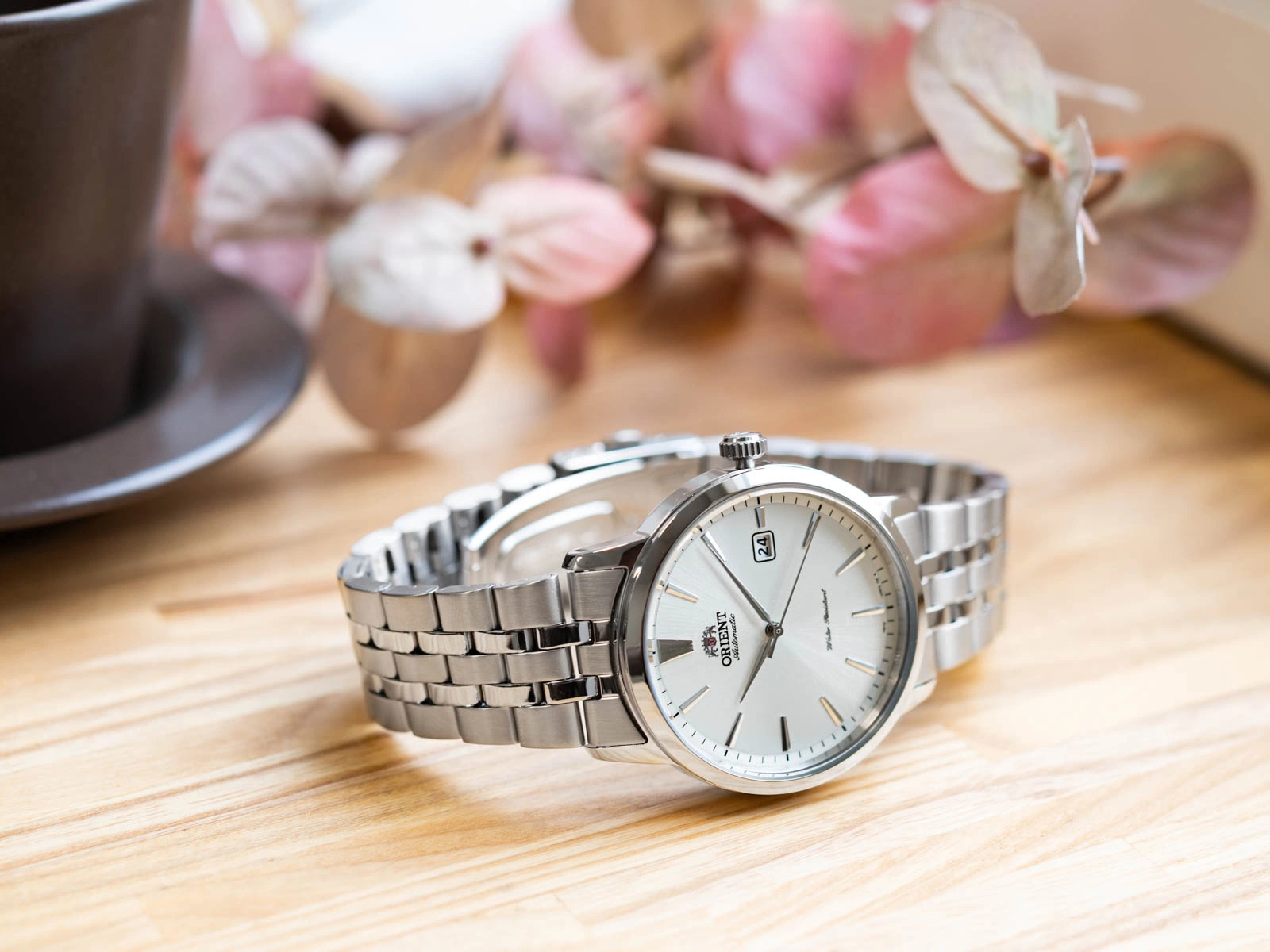 - Automatyczny Zegarek Męski Orient RA-AC0F02S30B srebrny na bransolecie. Posiada funkcję datownika.