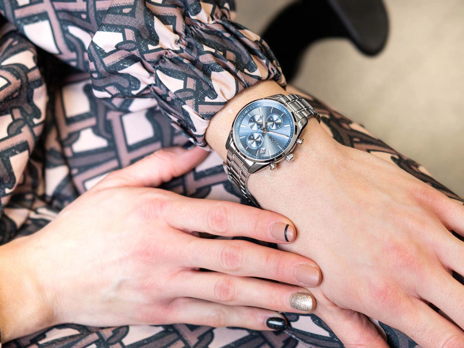 Hugo Boss 1502767 Grand Tour to elegancki zegarek stworzony dla kobiet ceniących wyrafinowany styl i luksusowe akcenty. Jego klasyczny design, wzbogacony o nowoczesne detale, sprawia, że jest doskonałym wyborem zarówno na co dzień, jak i na wyjątkowe okazje. Harmonijne połączenie srebra i głębokiego niebieskiego nadaje mu wyjątkowego charakteru, a subtelna tarcza z delikatnymi indeksami gwarantuje czytelność i ponadczasowy urok. Smukła koperta osadzona jest na stylowej bransolecie, której precyzyjne, motylkowe zapięcie zapewnia komfort i bezpieczeństwo noszenia. Praktyczny multidatownik umożliwia wygodne śledzenie aktualnej daty oraz czasu w 24-godzinnym formacie, podkreślając funkcjonalność modelu.