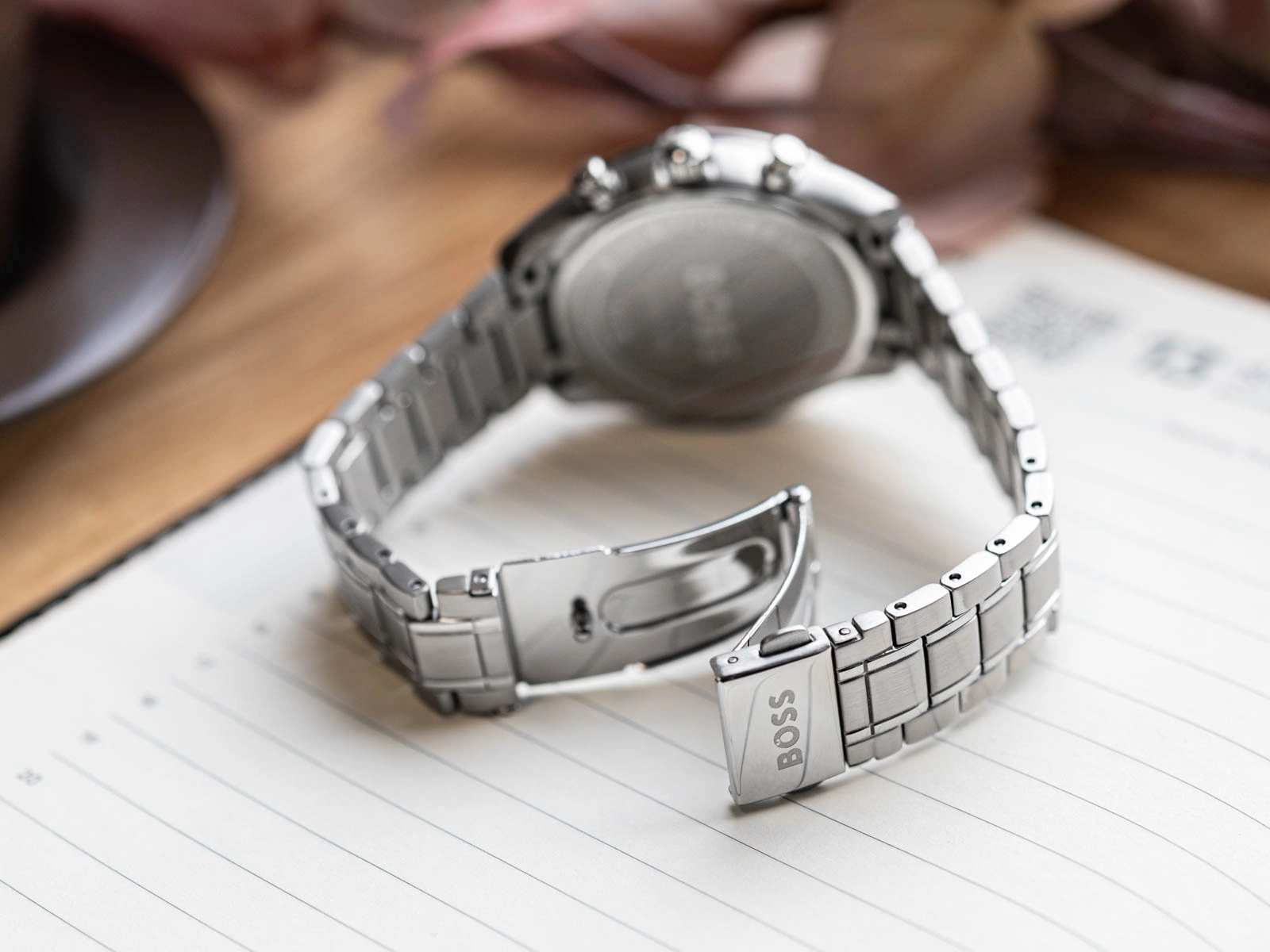 • Zegarek Damski Hugo Boss 1502767 srebrny na bransolecie, posiada funkcję datownika.