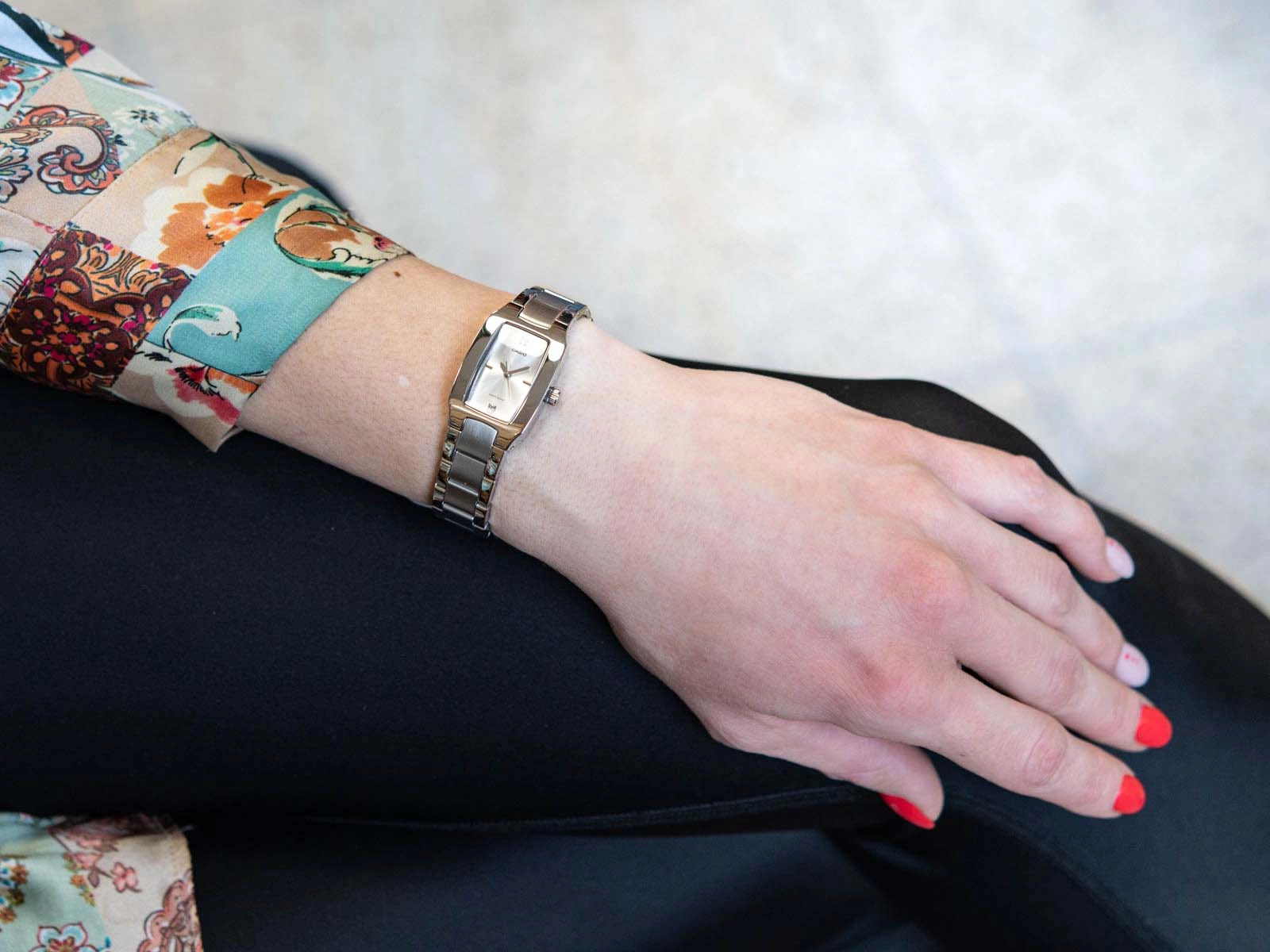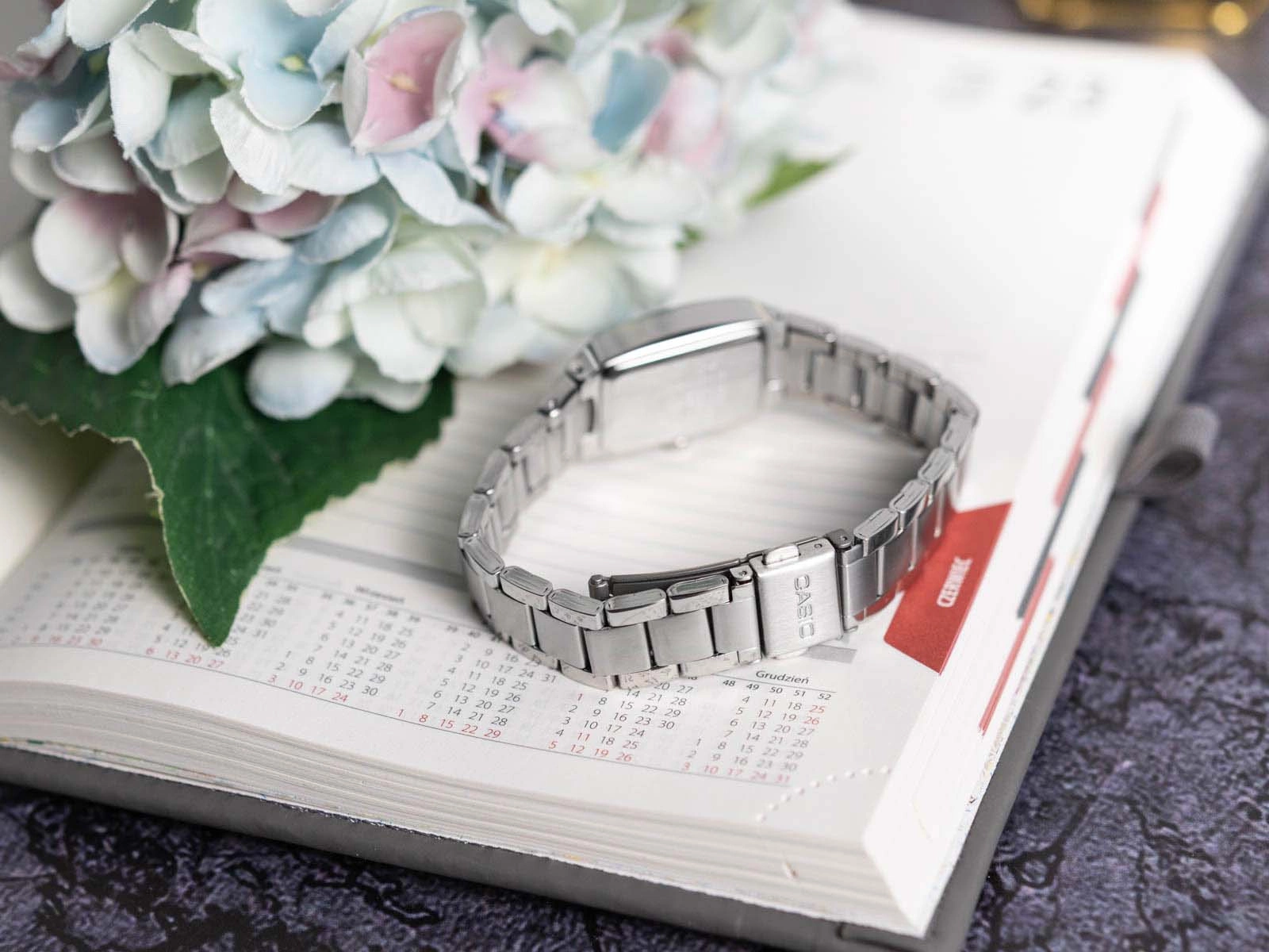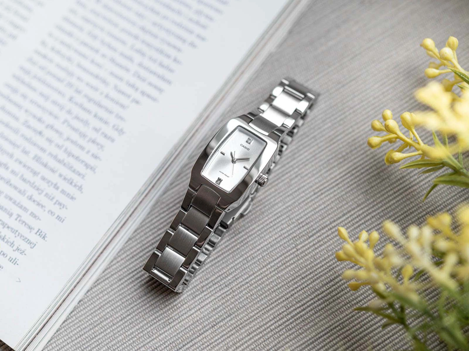 CASIO LTP-1165PA-7C2EF to kwintesencja stylu i elegancji zamknięta w subtelnej formie. Jego smukła, prostokątna koperta nadaje mu wyrafinowany charakter, który doskonale łączy klasykę z nowoczesnym designem. Ten model to idealne rozwiązanie dla kobiet ceniących subtelne, ale efektowne dodatki. Srebrna tarcza o minimalistycznym wyglądzie, wzbogacona została dwiema lśniącymi cyrkoniami umieszczonymi na godzinie 12 i 6. Ten drobny akcent dodaje zegarkowi wyjątkowego blasku i delikatnej biżuteryjnej nuty. Całość zabezpiecza odporne na zarysowania szkło mineralne, które gwarantuje długotrwałą estetykę i ochronę przed uszkodzeniami. Dzięki smukłym proporcjom zegarek ten świetnie leży na nadgarstku, nie przytłaczając go, lecz subtelnie podkreślając styl właścicielki.