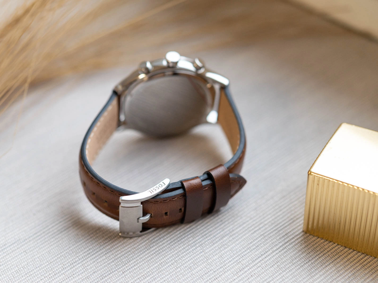 Zegarek męski Fossil BQ2811 Fenmore zadowoli każdego nowoczesnego mężczyznę, poszukującego elegancji, funkcjonalności i wyjątkowej jakości. Jego stalowa koperta doskonale współgra z miękkim, skórzanym paskiem, który nie tylko zapewnia wygodę noszenia, ale także perfekcyjnie dopasowuje się do nadgarstka, oferując komfort przez cały dzień. Skórzany materiał z czasem staje się coraz bardziej elastyczny i miękki, co sprawia, że zegarek staje się jeszcze przyjemniejszy w użytkowaniu.
