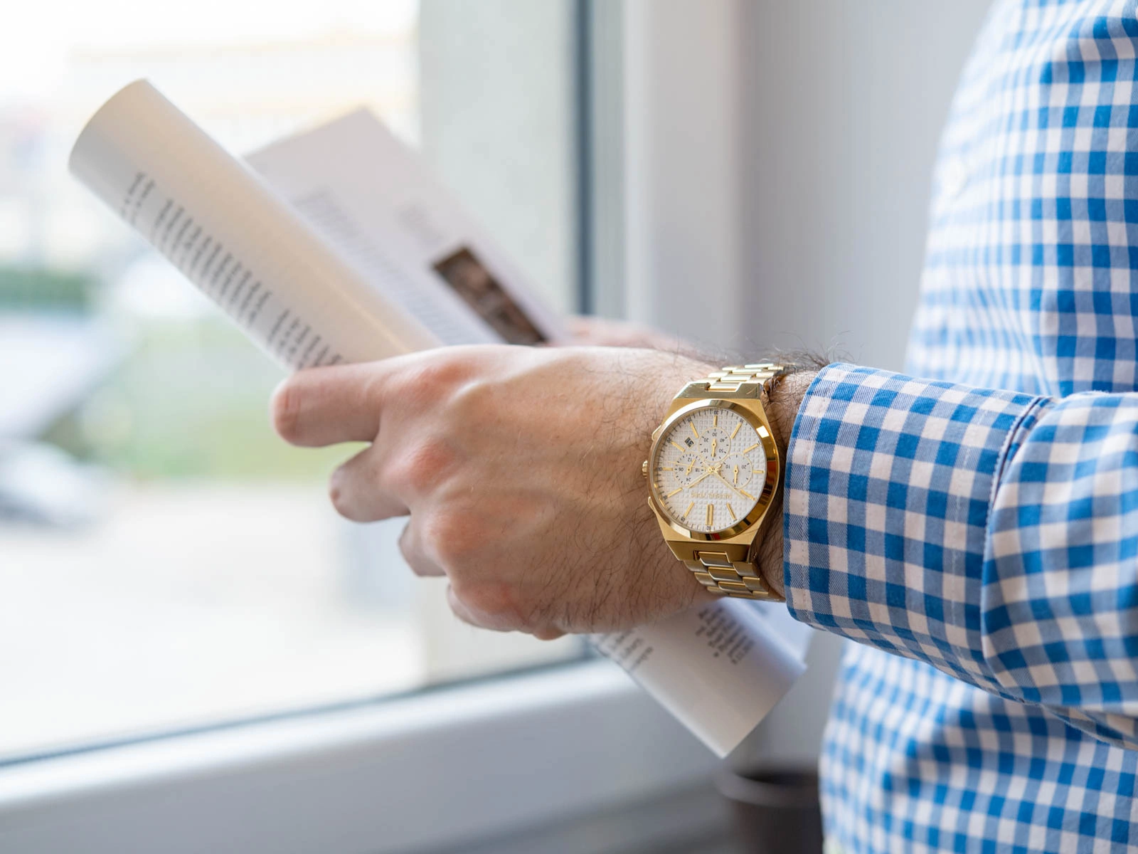 Biała, ryflowana tarcza, chroniona przez płaskie szkło mineralne, wyróżnia się subtelną fakturą kratki i eleganckimi błyszczącymi indeksami. Minimalistyczne logo producenta dopełnia jej nowoczesny wygląd. Model MK9120 Lennox to nie tylko atrakcyjny design, ale również praktyczność – między indeksami godziny 4 i 5 znajduje się datownik, który wskazuje aktualny dzień miesiąca. Dodatkowo, trzy mniejsze tarcze oferują funkcje 24-godzinnego zegara oraz stopera analogowego, który odmierza czas do 30 minut. Fosforyzowane elementy na wskazówkach, umożliwiają łatwe odczytanie godziny w ciemności. Całość zapakowana jest w eleganckie pudełko, co czyni ten zegarek idealnym wyborem na prezent.