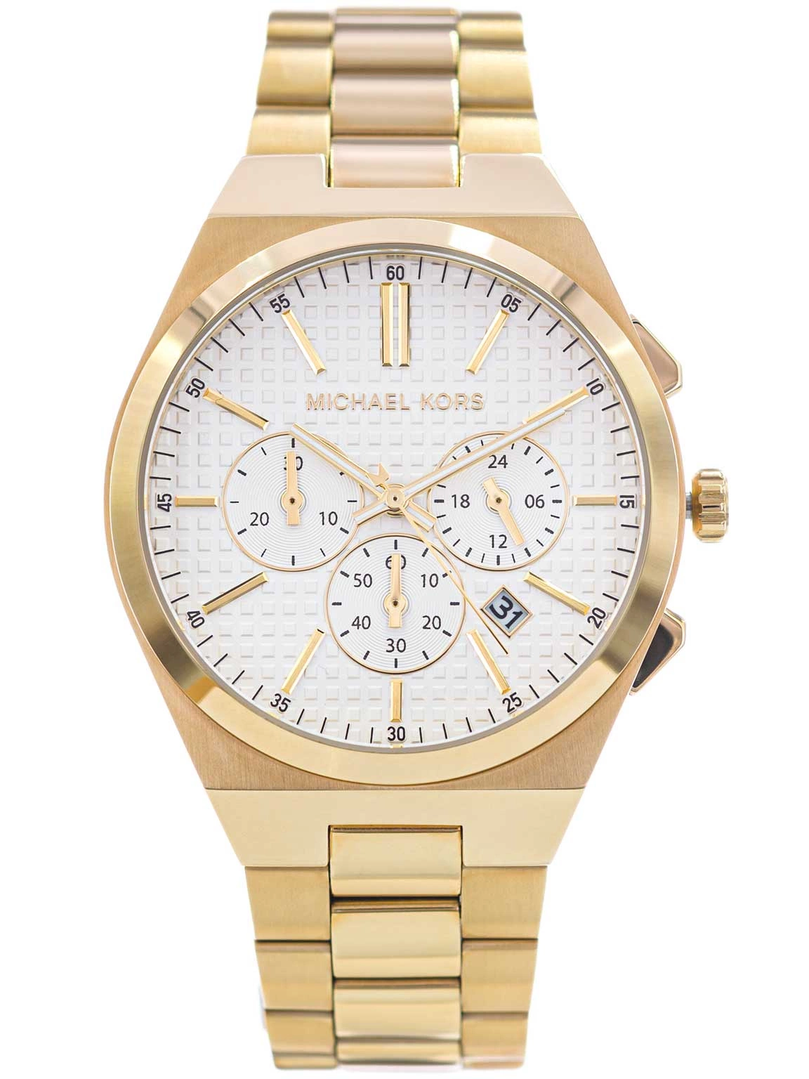 - Zegarek Męski Michael Kors MK9120 złoty na bransolecie. Posiada funkcje datownika, stopera i neobrite.