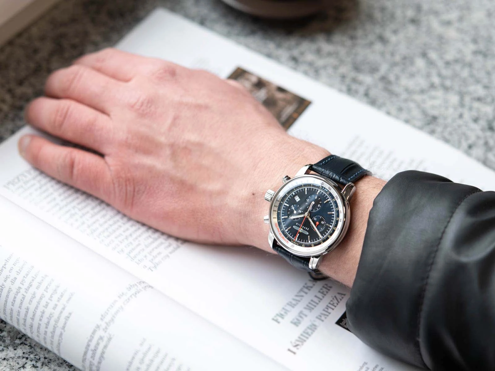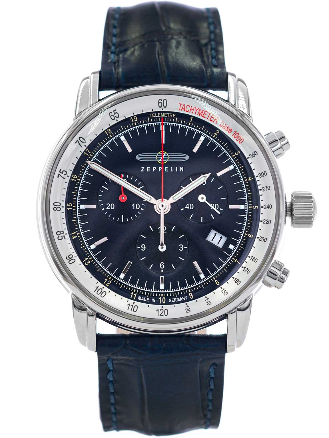 - Zegarek Męski Zeppelin 8888-3 granatowy na pasku, posiada funkcje takie jak stoper, datownik i neobrite.