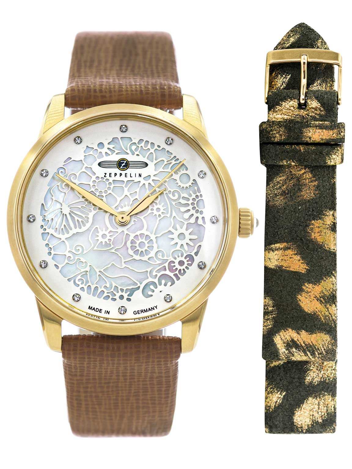 • Zegarek Damski Zeppelin 7345-1_set brązowy na pasku z dodatkowym paskiem w cętki.