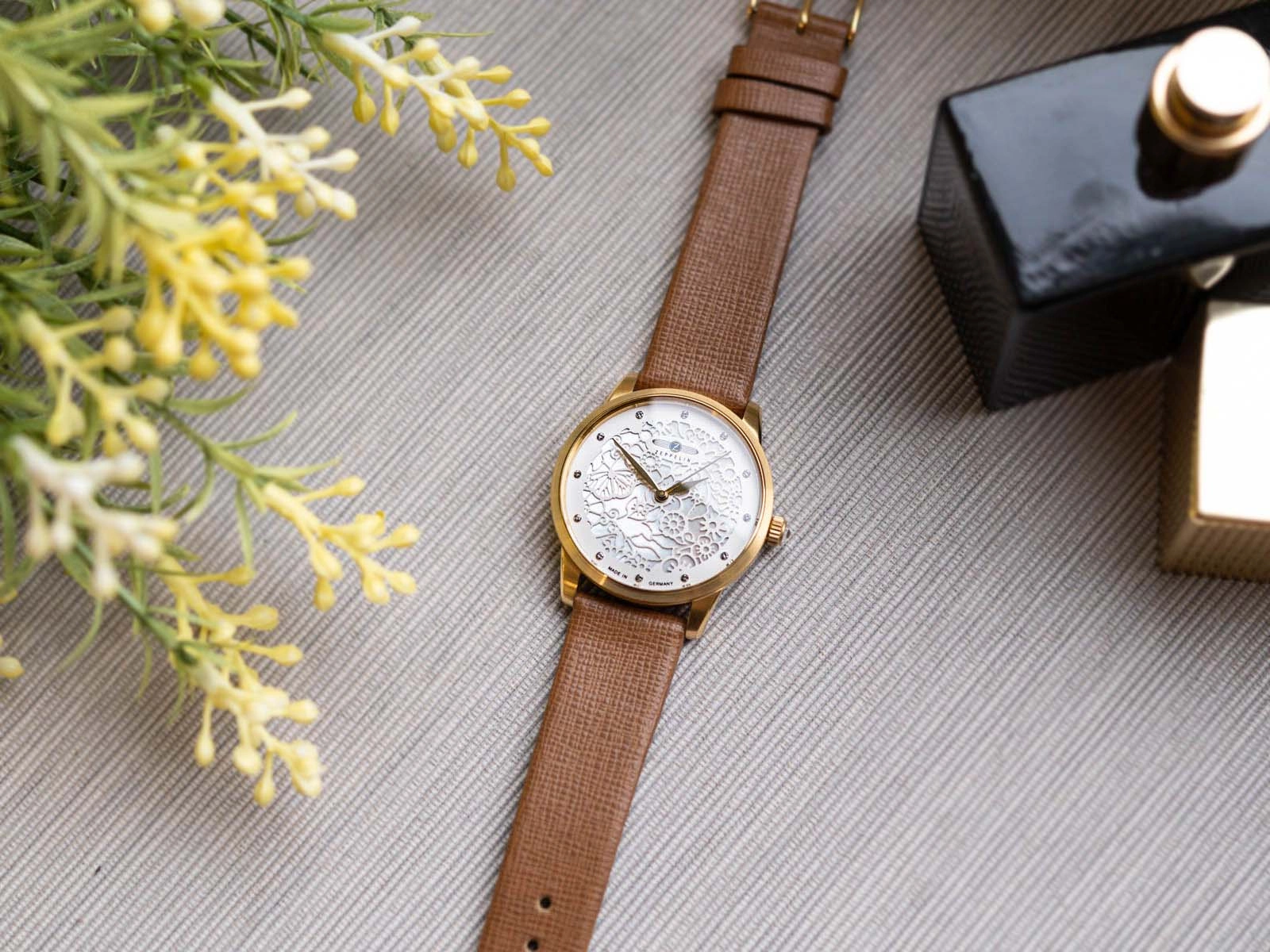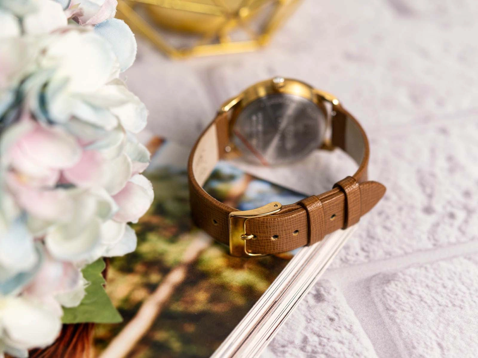 Zegarek ZEPPELIN Princess Of The Sky 7345-1_set to elegancka propozycja stworzona z myślą o kobietach ceniących klasykę i styl. Jego wyrafinowana konstrukcja łączy złotą stalową kopertę z gładkim, brązowym paskiem wykonanym z wysokiej jakości skóry naturalnej. Dzięki temu model ten doskonale komponuje się zarówno z codziennymi stylizacjami, jak i bardziej formalnymi zestawami. Tarcza zegarka, utrzymana w srebrnym odcieniu, przyciąga wzrok ażurowym wykończeniem oraz błyszczącymi kryształkami pełniącymi funkcję indeksów godzinowych. Całość prezentuje się niezwykle stylowo i kobieco, dodając blasku każdej stylizacji.