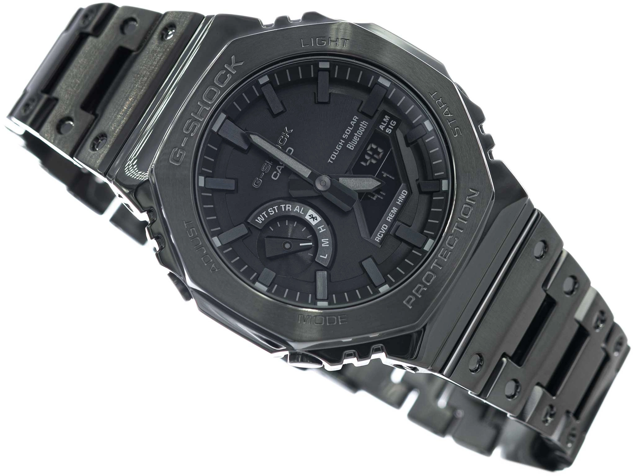 - Wodoszczelny Zegarek Męski Casio G-SHOCK GM-B2100BD 1 czarny na bransolecie, posiada funkcje takie jak stoper, timer, alarm, datownik bluetooth. Zegarek solarny.