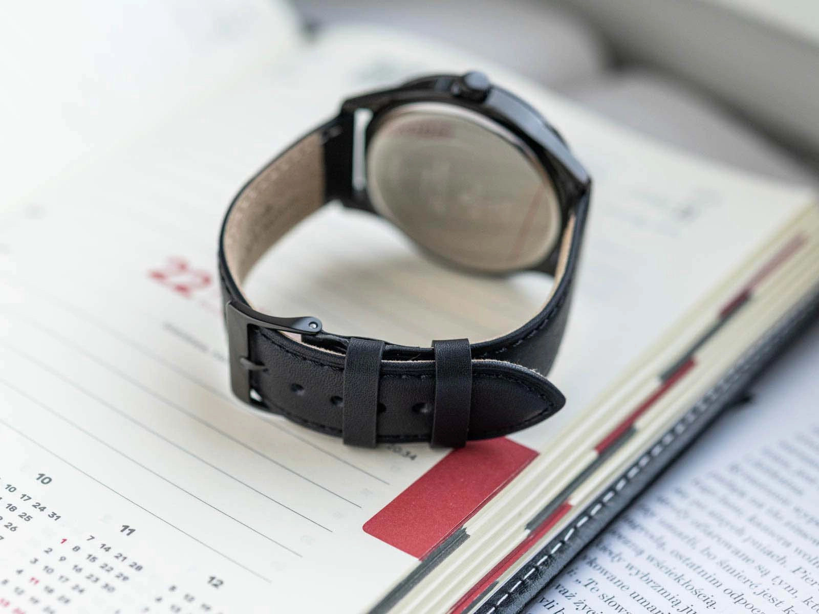 Guess Dex GW0846G3 to męski zegarek, który emanuje nowoczesną elegancją i ponadczasowym stylem. Jego monochromatyczna kolorystyka podkreśla minimalistyczny, a zarazem wyrazisty charakter, czyniąc go doskonałym dodatkiem do każdego stroju. Koperta wykonana ze stali szlachetnej w głębokim odcieniu czerni nadaje modelowi zdecydowanego, męskiego wyrazu, a jej staranne wykończenie podkreśla wysoką jakość wykonania. Wewnątrz znajduje się precyzyjny mechanizm kwarcowy, gwarantujący dokładność i niezawodność przez długi czas. Dopełnieniem całości jest czarny, skórzany pasek, który zapewnia komfort noszenia i idealnie współgra z elegancką stylistyką zegarka.