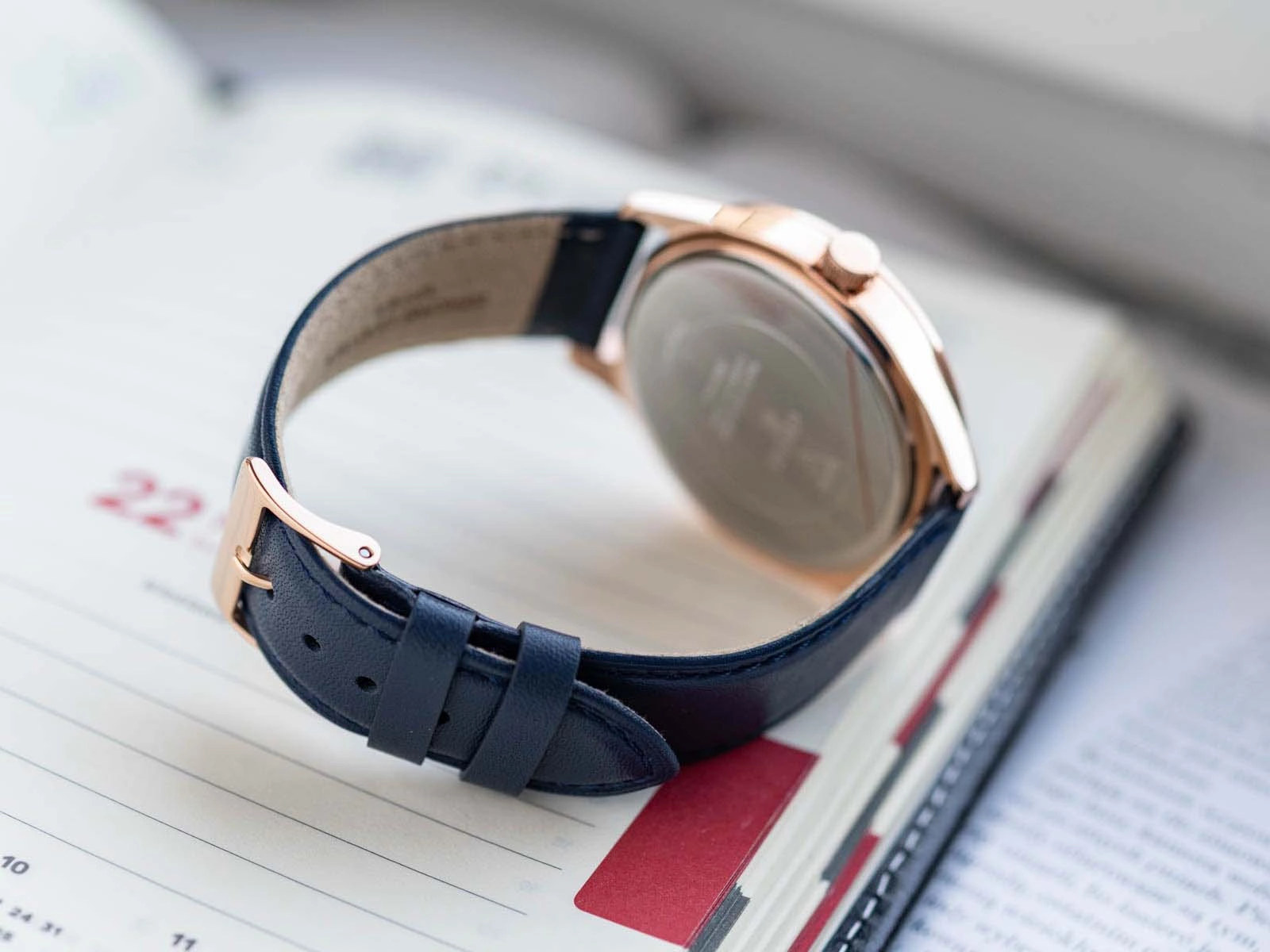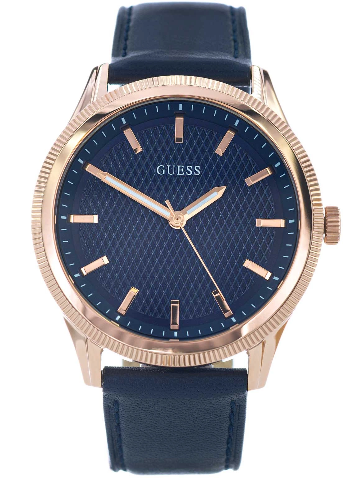 Guess Dex GW0846G2 to elegancki męski zegarek, który przyciąga uwagę harmonijnym połączeniem klasyki i nowoczesnego stylu. Jego wyjątkowy design opiera się na kontrastach – głęboki granat tarczy i paska doskonale współgra z ciepłym odcieniem różowego złota, tworząc luksusowy, ale nienachalny efekt. Koperta, wykonana z wysokiej jakości stali szlachetnej w modnym kolorze różowego złota nadaje zegarkowi prestiżowego charakteru. Wewnątrz ukryto precyzyjny mechanizm kwarcowy, gwarantujący niezawodność i dokładność pomiaru czasu. Dopełnieniem całości jest granatowy pasek ze skóry naturalnej, który zapewnia wygodę noszenia i podkreśla ekskluzywny wygląd zegarka. Tarcza w głębokim odcieniu granatu wyróżnia się delikatną fakturą, która dodaje jej wyrafinowania. Indeksy oraz smukłe wskazówki w kolorze różowego złota tworzą elegancki kontrast, gwarantując czytelność i podkreślając nowoczesny charakter zegarka. Dyskretnie umieszczone logo marki Guess dodaje całości subtelnej, luksusowej nuty. Tarczę zabezpiecza trwałe, mineralne szkło odporne na zarysowania, dzięki czemu zegarek zachowuje swój nienaganny wygląd przez długi czas. Ponadto powłoka luminescencyjna neobrite na wskazówkach pozwala, po wcześniejszym naświetleniu, na wygodne odczytanie godziny nawet przy słabszym oświetleniu. Model GW0846G2 to doskonały wybór dla mężczyzn, którzy cenią sobie elegancję z nowoczesnym akcentem. Jego stylowy wygląd sprawia, że świetnie pasuje zarówno do formalnych stylizacji, jak i do codziennych zestawów z koszulą czy marynarką. Zapakowany w oryginalne pudełko Guess, będzie również doskonałym pomysłem na prezent dla kogoś, kto lubi wyrafinowane dodatki i ponadczasowy design.