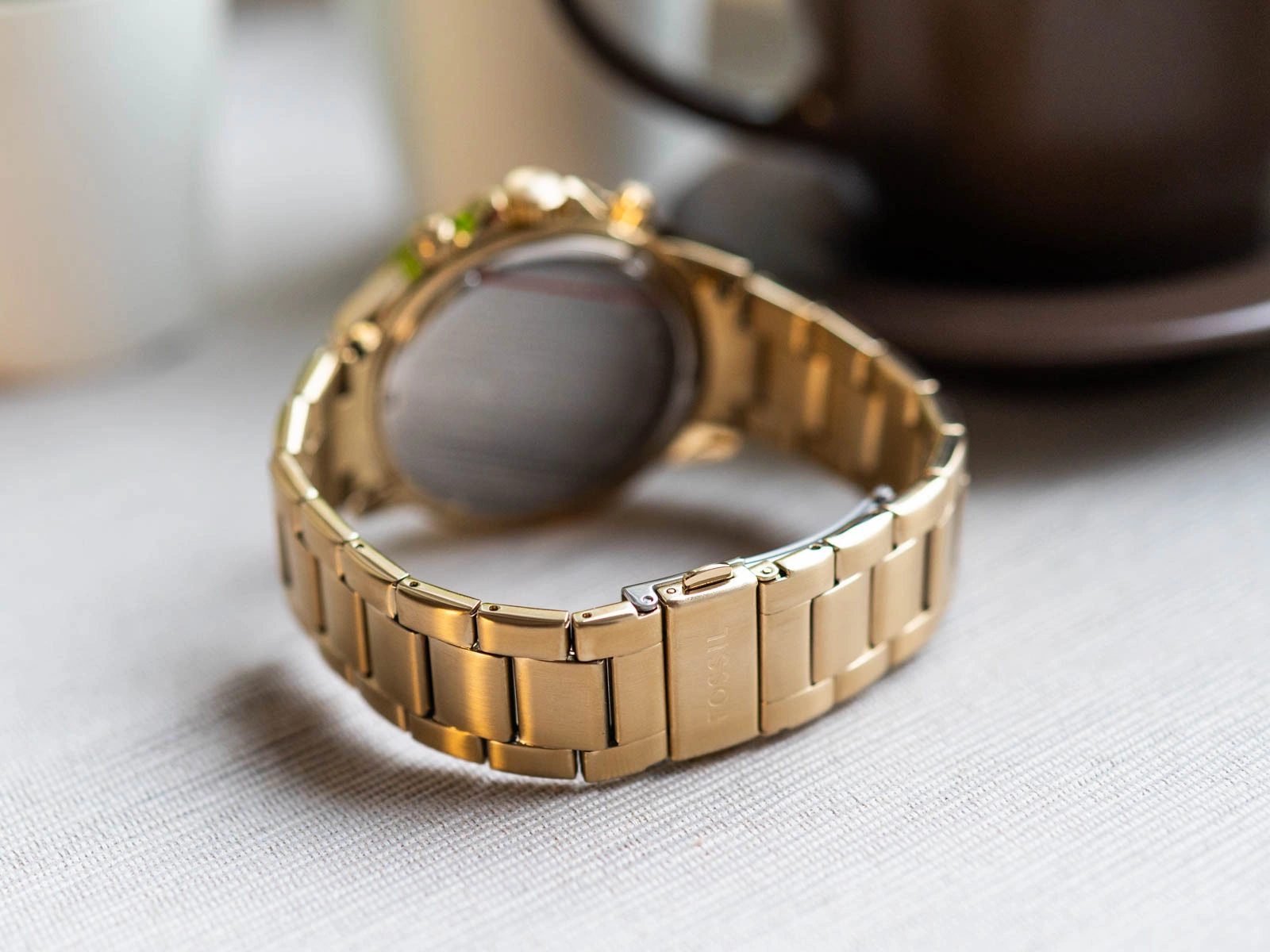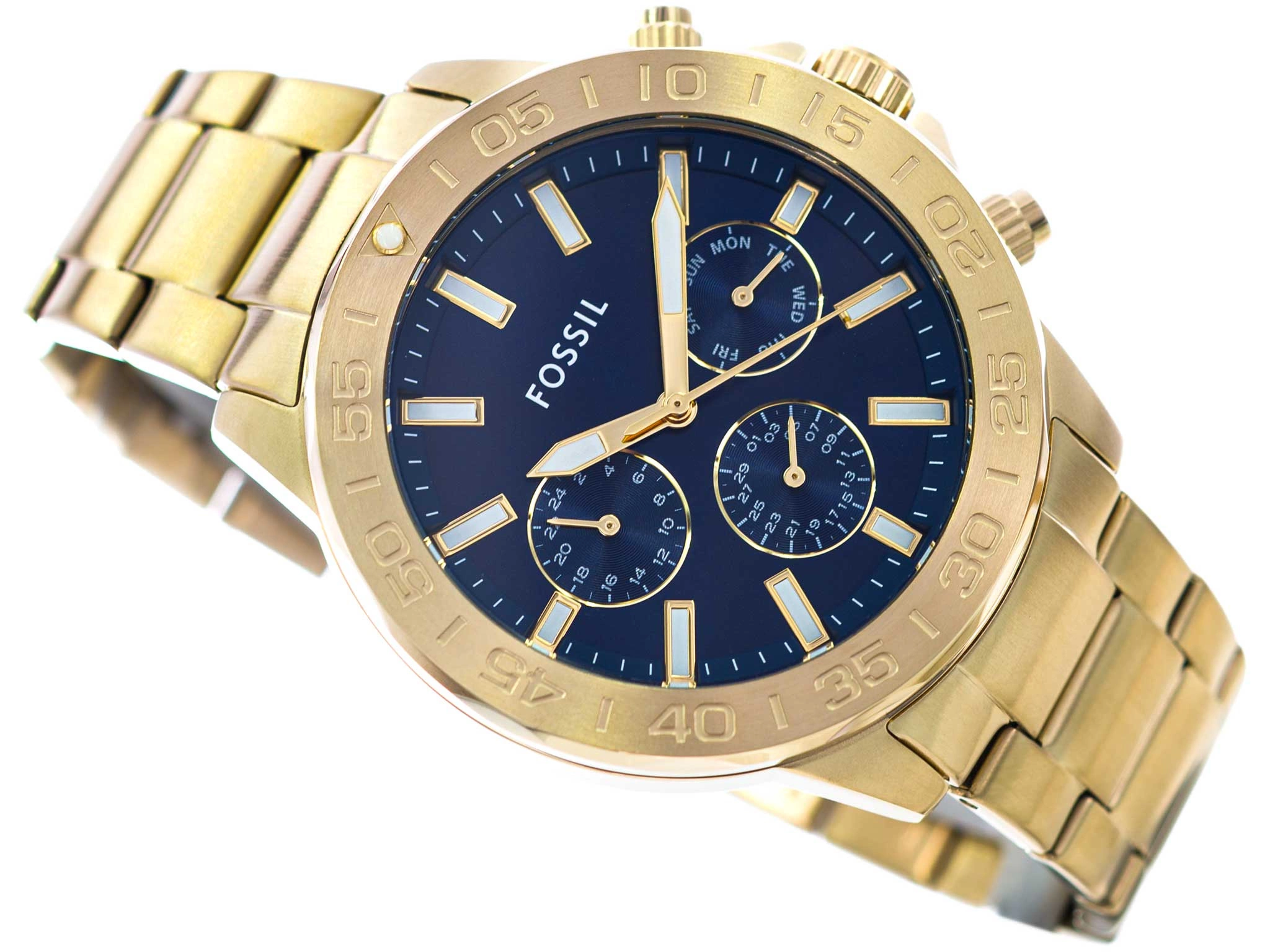 - Zegarek Męski Fossil BQ2706 złoty na bransolecie, posiada funkcję datownika.