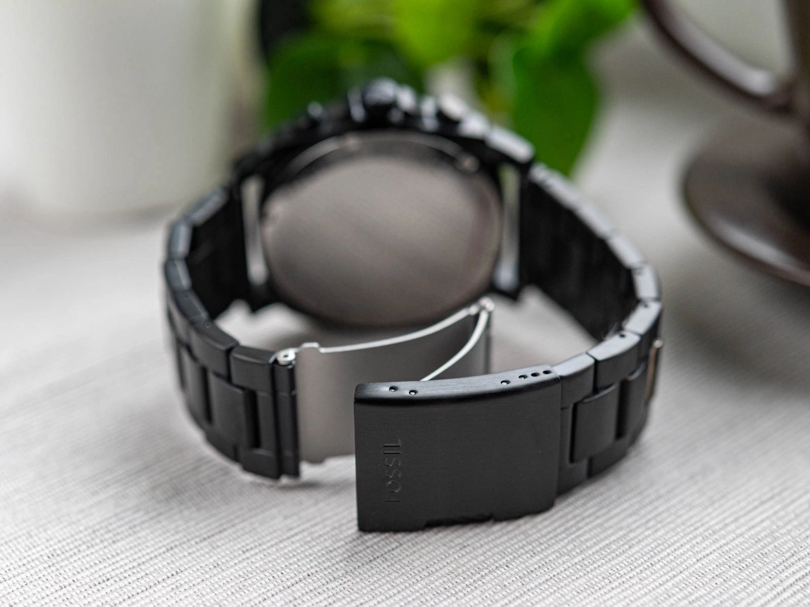 - Zegarek Męski Fossil BQ2759 czarny na bransolecie, posiada funkcję stopera, datownika i neobrite.