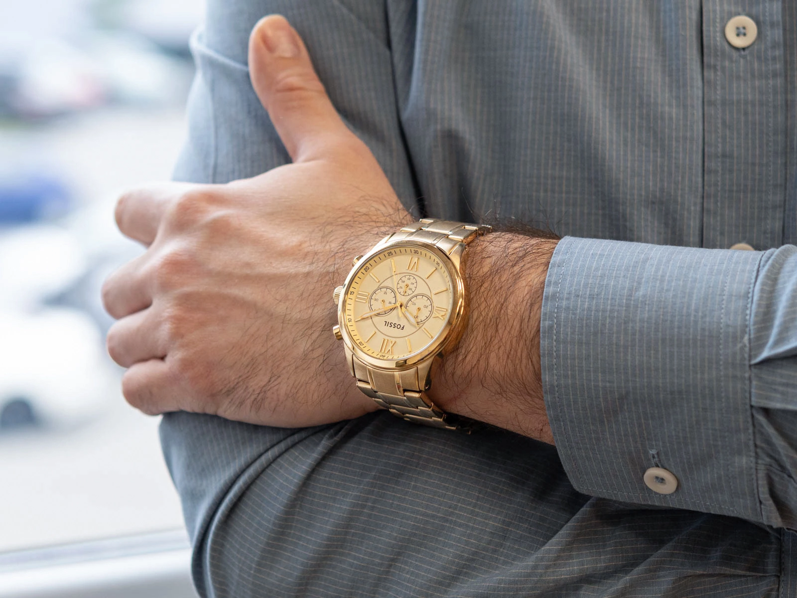 Zegarek Fossil BQ1128IE to udane połączenie klasyki z nowoczesnością. Złota kolorystyka koperty i detali nadaje mu uniwersalności – świetnie sprawdzi się w zestawieniu z garniturem, marynarką, ale także jako dodatek do mniej formalnych stylizacji. Całość zapakowana jest w oryginalne pudełko sygnowane logo Fossil, co czyni ten zegarek również doskonałym pomysłem na prezent dla mężczyzny z klasą. To idealna propozycja dla tych, którzy poszukują eleganckiego, a zarazem praktycznego dodatku do swojej codziennej garderoby.