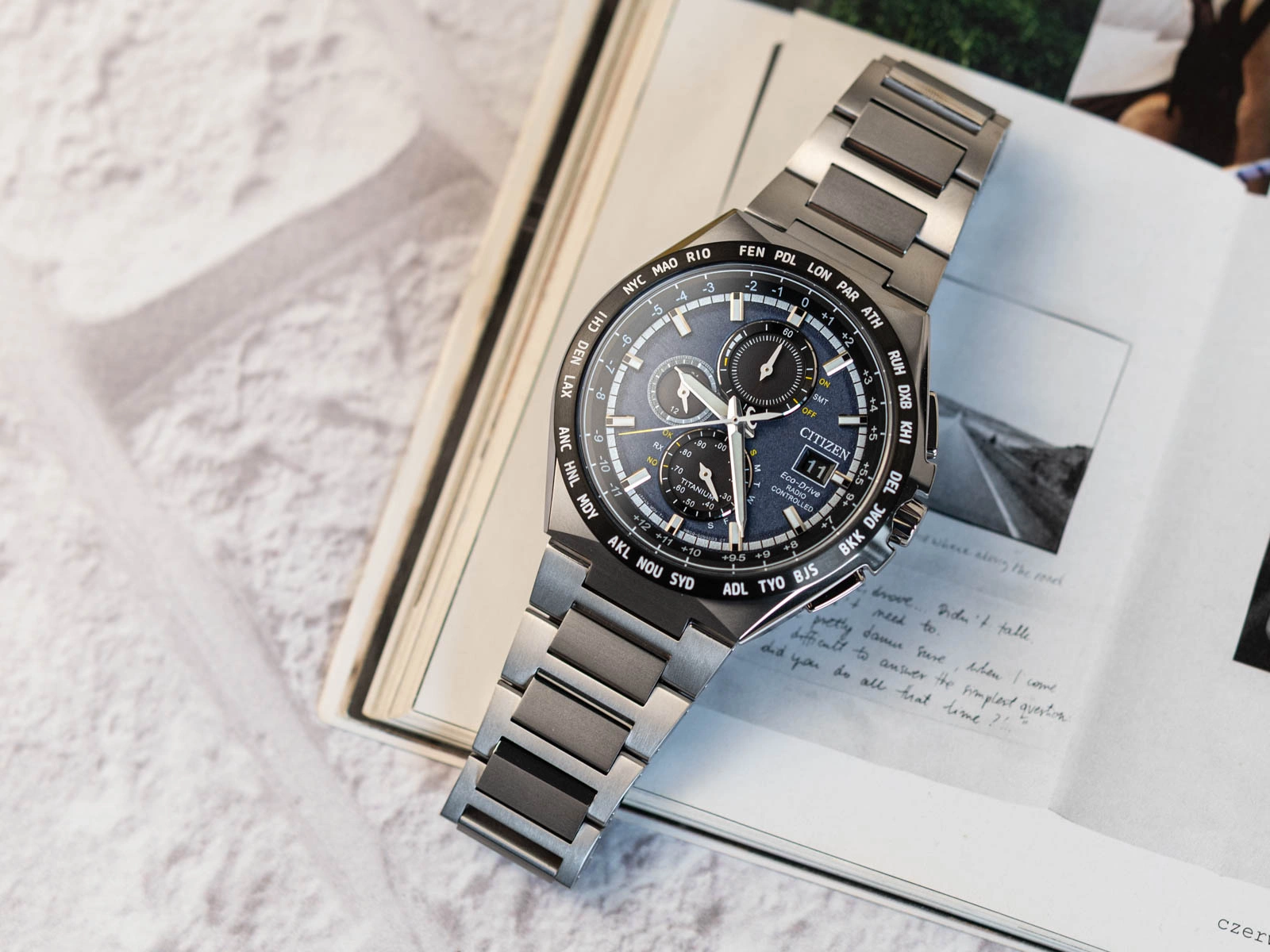 Mechanizm kwarcowy Cal. H800, zasilany światłem dzięki technologii Eco-Drive, gwarantuje nieprzerwaną pracę nawet przez 10 miesięcy bez ekspozycji na źródło światła, eliminując konieczność wymiany baterii. Dzięki funkcji Radio Controlled zegarek automatycznie synchronizuje się z zegarem atomowym, co zapewnia niemal absolutną precyzję – niezależnie od strefy czasowej. Funkcje takie jak wieczny kalendarz, czas światowy, stoper, zegar 24-godzinny czy automatyczna korekta ustawień sprawiają, że model ten to nie tylko akcesorium, ale również narzędzie do zadań specjalnych. Szafirowe szkło, odporne na zarysowania, stanowi skuteczną ochronę cyferblatu, jednocześnie oferując doskonałą przejrzystość i odporność na codzienne użytkowanie. Wskazówki oraz indeksy pokryte zostały powłoką luminescencyjną neobrite, która umożliwia łatwy odczyt godziny nawet w całkowitej ciemności. Wodoszczelność na poziomie 10 BAR sprawia, że zegarek doskonale sprawdza się także podczas kontaktu z wodą, chroniąc mechanizm przed wilgocią, pod warunkiem odpowiedniego zabezpieczenia koronki.