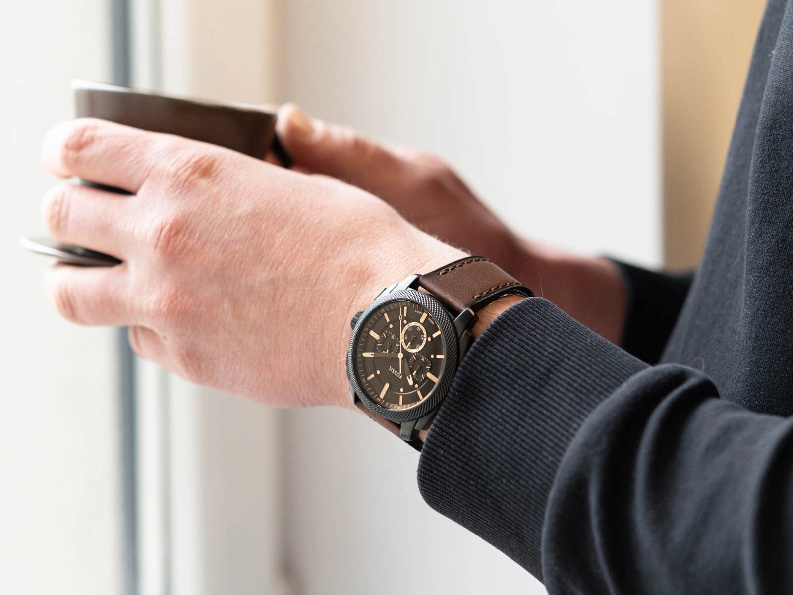Fossil Machine Chronograph FS6101 to kwintesencja stylu, który nigdy nie wychodzi z mody. Klasyczny design spotyka się tu z nowoczesną funkcjonalnością, tworząc dodatek idealny dla pewnych siebie mężczyzn. Minimalistyczna kolorystyka i brązowa tarcza sprawiają, że FS6101 przyciąga uwagę, nie będąc przy tym nachalnym. Wyrazisty, moletowany bezel i solidna koperta ze stali szlachetnej dodają mu wyrazistości, a skórzany pasek zapewnia wygodę przez cały dzień – zarówno w biurze, jak i po godzinach.