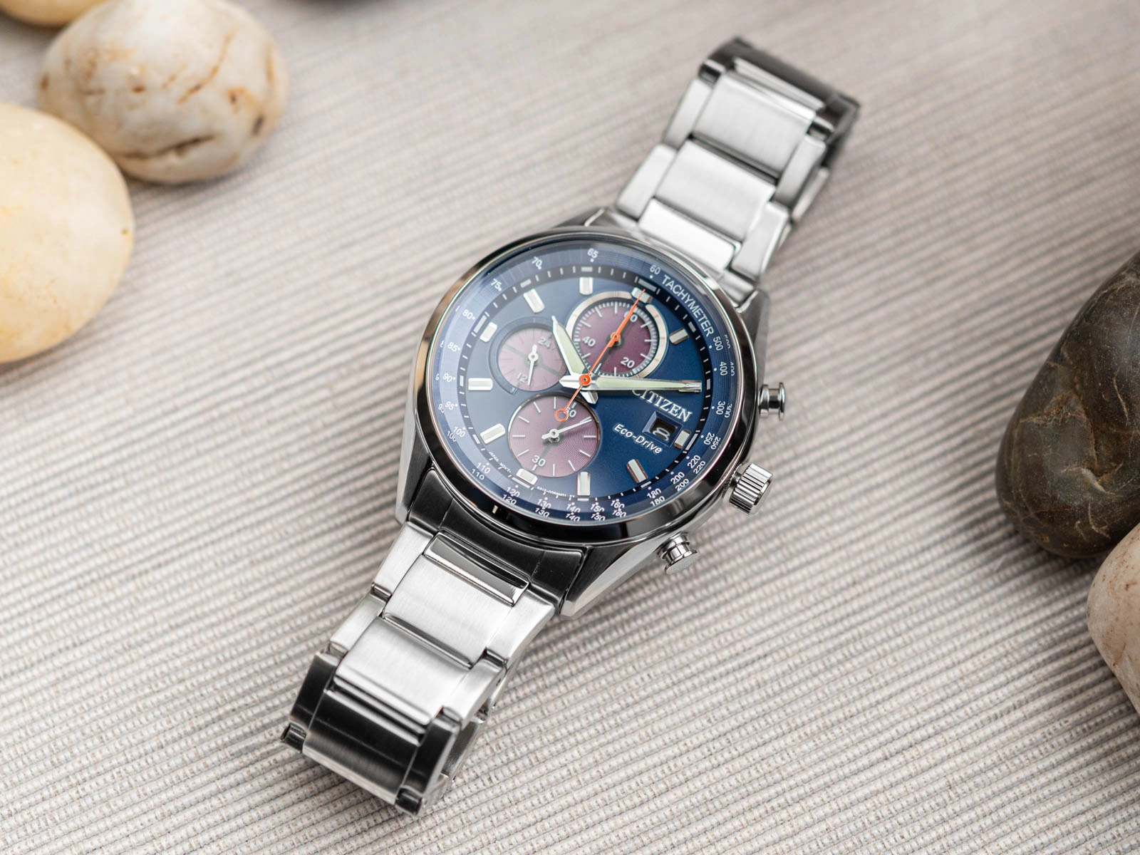 Mechanizm kwarcowy zasilany systemem Eco-Drive to serce tego czasomierza – rozwiązanie, które sprawia, że zegarek nie potrzebuje klasycznej baterii, by działać niezawodnie każdego dnia. Energia pobierana z dowolnego źródła światła zapewnia mu ciągłość pracy, jednocześnie wpisując się w coraz bardziej doceniany nurt zrównoważonego podejścia do technologii. Subtarcze chronografu oraz wskaźnik dobowy zostały wkomponowane z dbałością o proporcje i porządek, dzięki czemu nie tylko oferują rozbudowane funkcje pomiarowe, ale również wzbogacają wizualnie projekt tarczy.