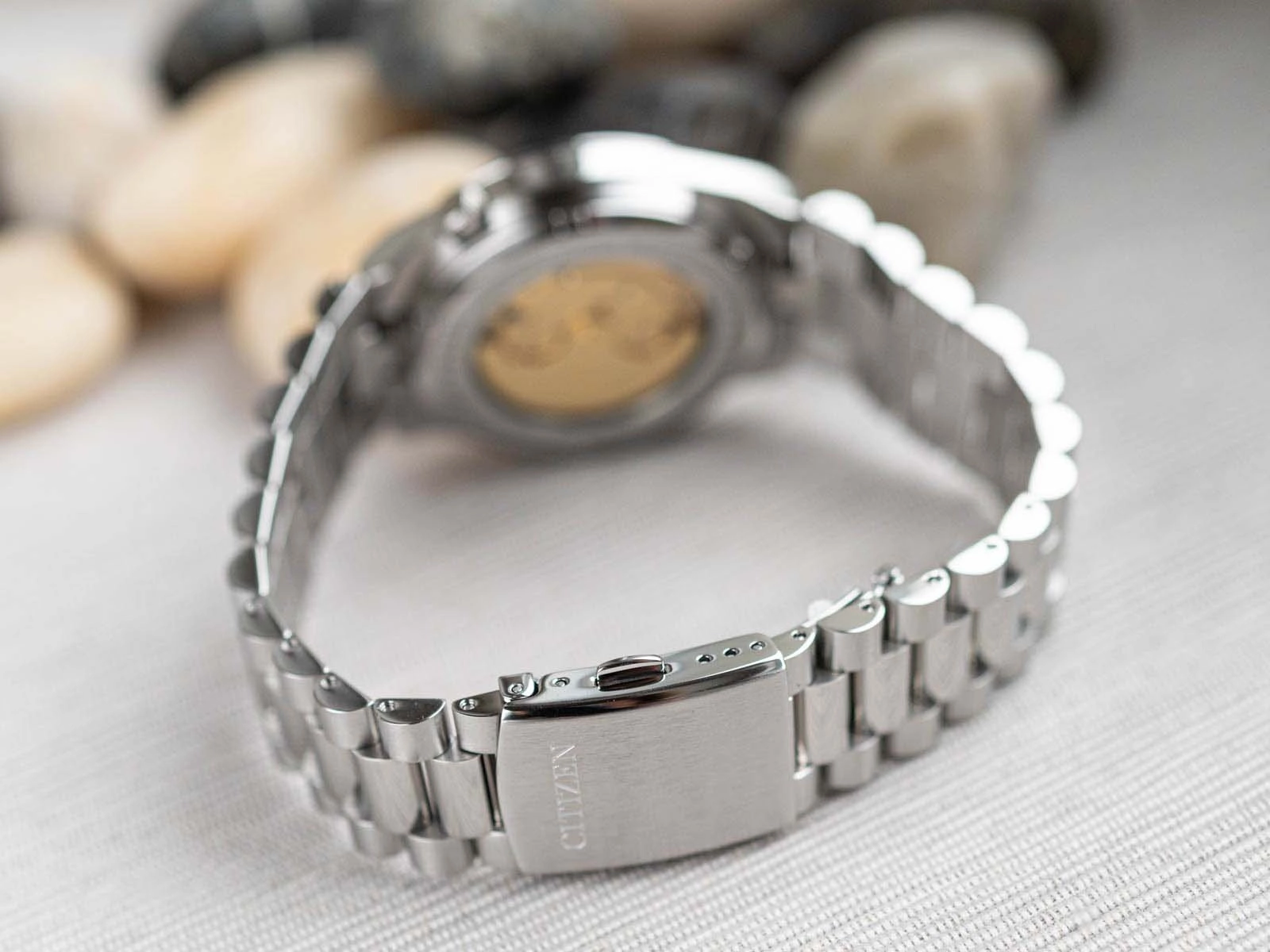 - Automatyczny Zegarek Męski Citizen NJ0159-86X srebrny na bransolecie, posiada funkcję datownika. Zegarek z szafirowym szkłem.