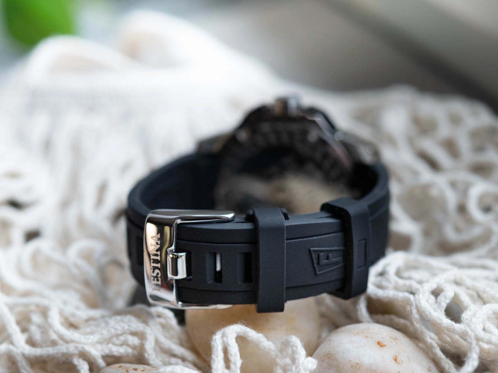 Festina Chrono Bike F20642/C to dynamiczny zegarek sportowy, który zachwyca nie tylko funkcjonalnością, ale także efektownym wyglądem. Jego przyciągająca wzrok czarno-zielona tarcza została zaprojektowana z myślą o osobach aktywnych, które cenią nowoczesny styl i wyrazisty design. Wyposażony w analogowy stoper, datownik wskazujący dzień miesiąca oraz dodatkową tarczę 24-godzinną, model ten oferuje szereg praktycznych rozwiązań dla użytkowników poszukujących niezawodności i wygody. Elementy takie jak wskazówki i indeksy zostały pokryte specjalną powłoką fluorescencyjną, dzięki czemu po uprzednim naświetleniu są widoczne również w ciemności — co stanowi istotną zaletę dla miłośników aktywności po zmroku. Wodoszczelność na poziomie 10 ATM umożliwia swobodne pływanie z zegarkiem, bez ryzyka uszkodzenia mechanizmu. Należy jednak pamiętać, aby nie używać przycisków pod wodą oraz zawsze upewnić się, że koronka jest odpowiednio dociśnięta.