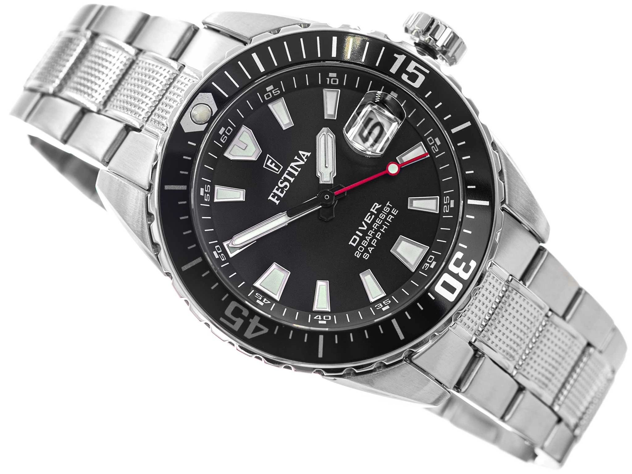 - Wodoszczelny Zegarek Męski Festina F20669/3 The Originals Diver srebrny na bransolecie, posiada funkcję datownika i neobrite.