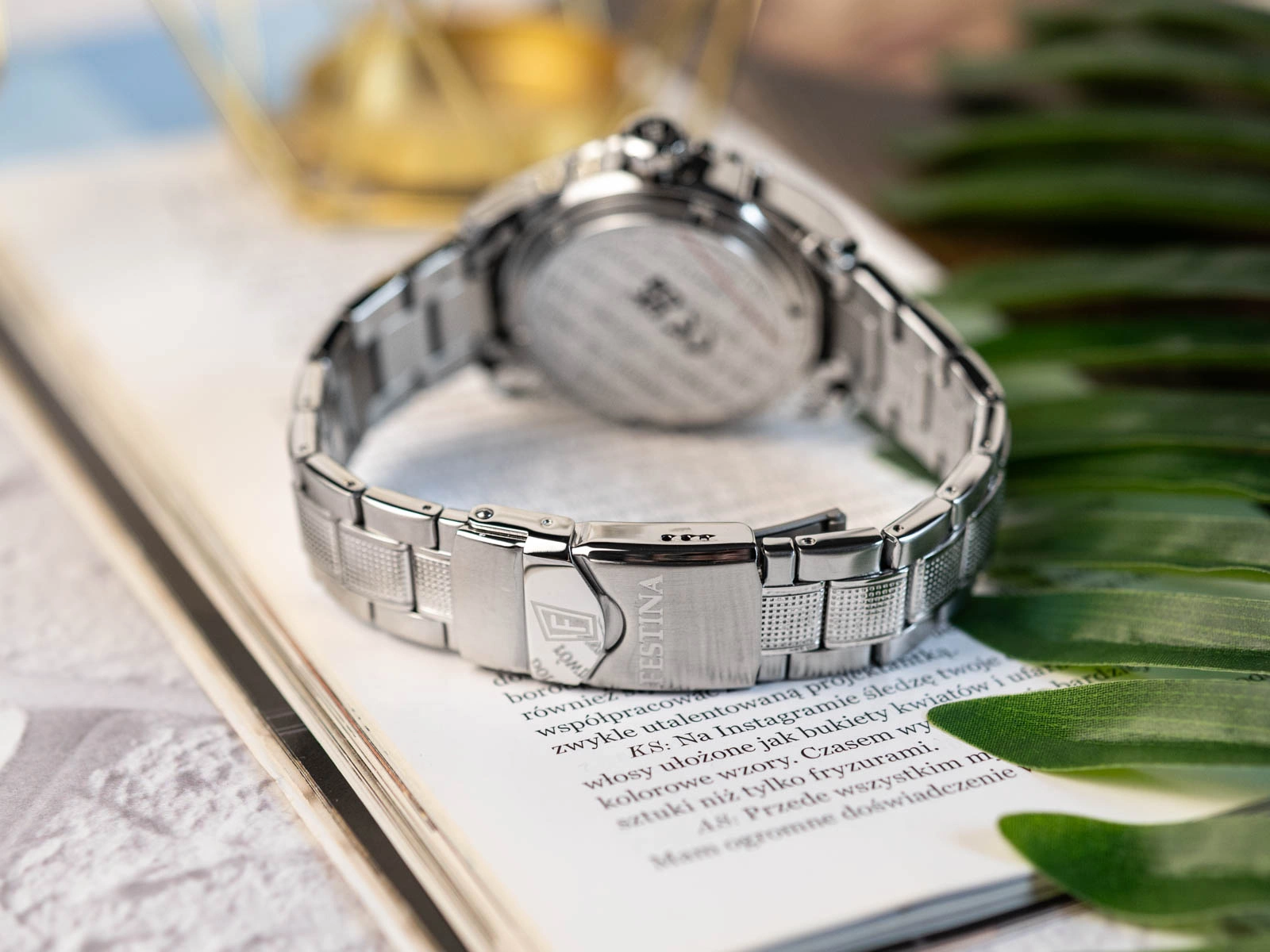 FESTINA F20669/3 The Originals Diver to zegarek stworzony z myślą o osobach, które cenią niezawodność, nowoczesne technologie i ponadczasowy design. Ten model to znakomity przykład połączenia klasyki diverów z wyrazistym, sportowym charakterem i precyzją wykonania, z jakiej słynie marka Festina. Zegarek zachwyca estetyką i funkcjonalnością, oferując rozwiązania, które zadowolą zarówno miłośników wodnych przygód, jak i tych, którzy szukają uniwersalnego zegarka do codziennego użytku. Sercem modelu FESTINA F20669/3 The Originals Diver jest wysoce precyzyjny mechanizm kwarcowy, zasilany baterią – gwarantujący niezawodne działanie w każdych warunkach. Obudowa zegarka została wykonana z odpornej na rdzewienie i zarysowania stali szlachetnej, co nie tylko zwiększa trwałość konstrukcji, ale również nadaje jej eleganckiego, profesjonalnego wyglądu. Koperta utrzymana jest w sportowym stylu z wyraźnymi krawędziami i solidną konstrukcją, co podkreśla charakter divera gotowego na każde wyzwanie – na lądzie i pod wodą.