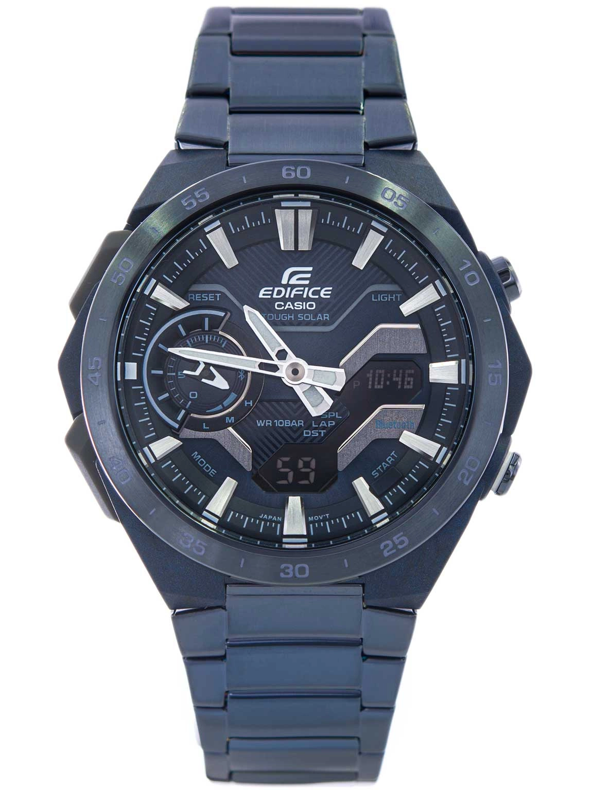 - Solarny Zegarek Męski Casio Edifice ECB-2200CB-2AEF granatowy na bransolecie, posiada funkcje takie jak stoper i bluetooth. Zegarek wodoszczelny.