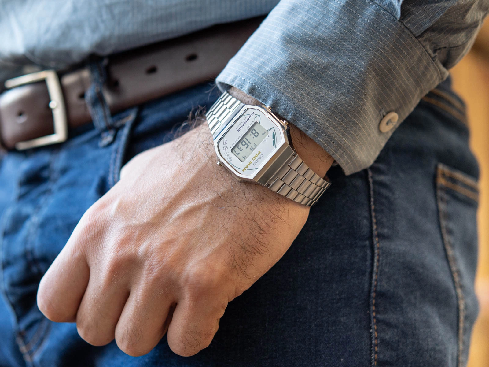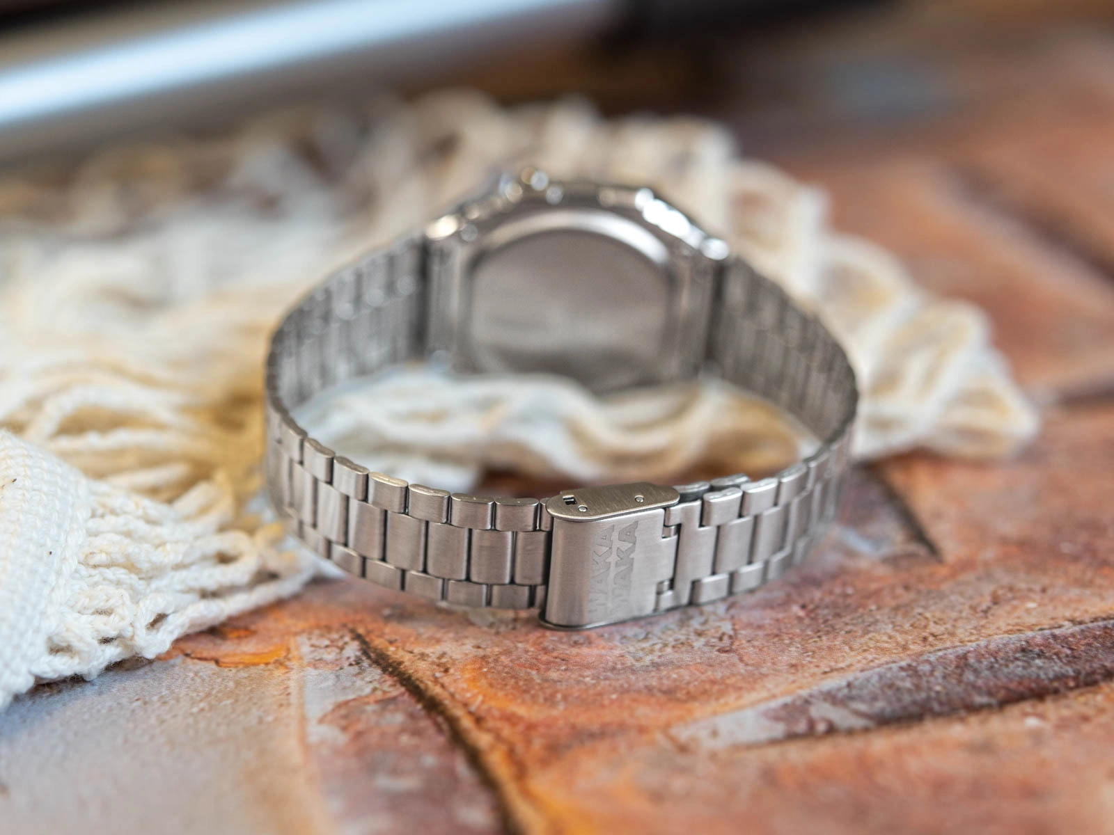 W warstwie konstrukcyjnej zegarek łączy w sobie lekkość koperty wykonanej z tworzywa sztucznego z trwałością stalowej bransolety, która zapewnia nie tylko komfort noszenia, ale i solidność wykonania charakterystyczną dla całej serii Casio Vintage. Zegarek pozostaje stosunkowo kompaktowy – jego średnica wynosi 36 mm, dzięki czemu doskonale układa się na nadgarstku i stanowi uniwersalny dodatek zarówno dla kobiet, jak i mężczyzn. Wśród funkcji zegarka znajdziemy wszystko, czego można oczekiwać od klasycznego modelu Casio: podświetlenie typu Illuminator, które równomiernie oświetla cały wyświetlacz; stoper z dokładnością do 1/100 sekundy; alarm dzienny przypominający o cyklicznych zdarzeniach oraz automatyczny kalendarz, który po jednokrotnym ustawieniu uwzględnia długość miesięcy. Możliwość wyboru między 12- i 24-godzinnym formatem czasu pozwala na dostosowanie sposobu prezentacji do własnych preferencji. Dzięki zastosowaniu wytrzymałej baterii, zegarek może działać bez konieczności wymiany źródła zasilania nawet przez siedem lat.