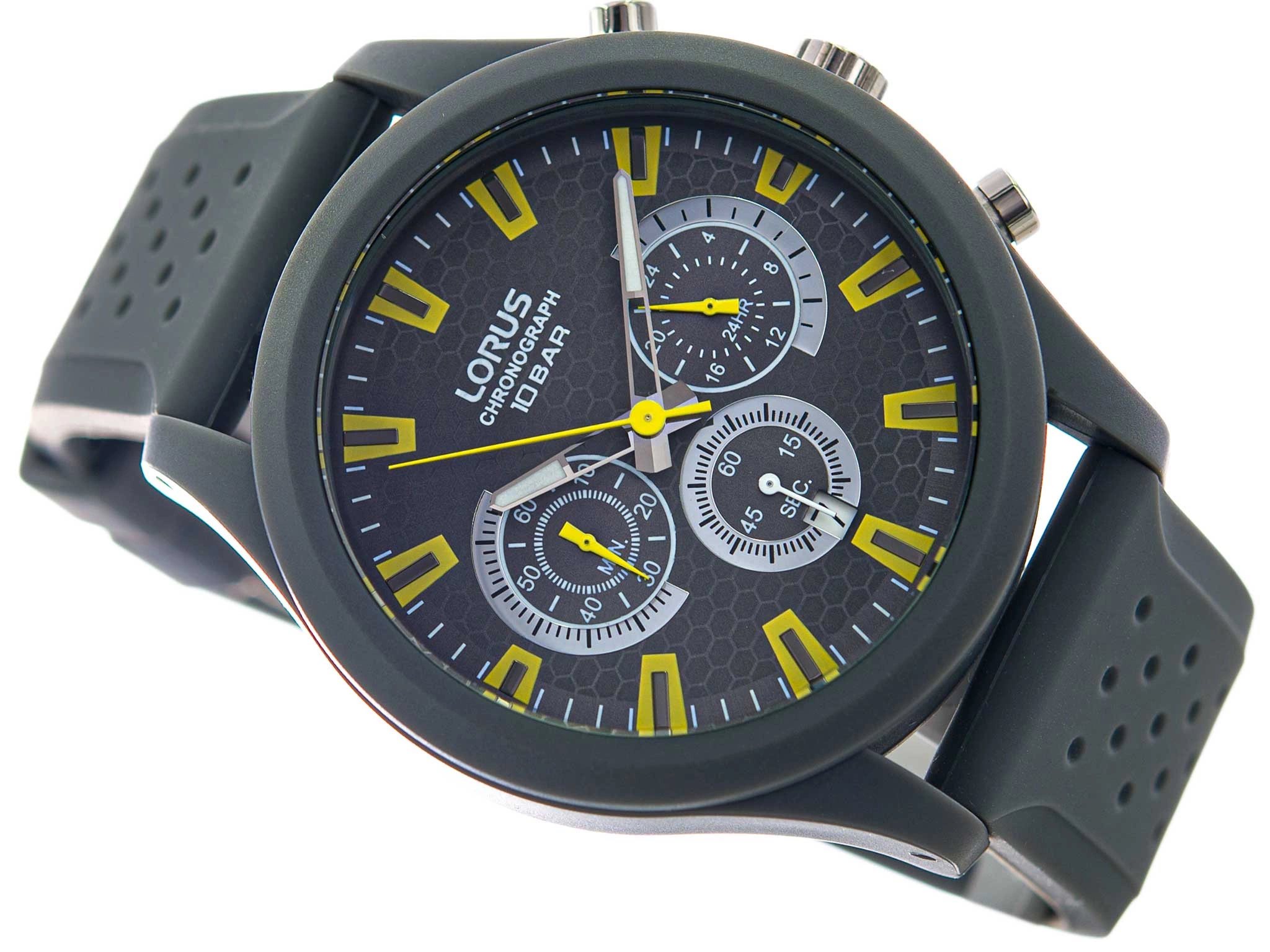 Lorus RT377JX9 Chronograph to zegarek, który idealnie łączy klasyczną estetykę z dynamicznym, sportowym charakterem. Został zaprojektowany z myślą o osobach ceniących sobie funkcjonalność i wysoką jakość wykonania. Precyzyjny mechanizm kwarcowy zapewnia niezawodne działanie i długą żywotność, a lekka koperta oraz pasek z wytrzymałego tworzywa sztucznego gwarantują komfort noszenia przez cały dzień. Czytelna tarcza, ozdobiona subtelnym wzorem w stylu plastra miodu, została wyposażona we wskazówki pokryte warstwą fosforyzującą Neobrite, co ułatwia odczyt godziny także przy słabym oświetleniu. Cyferblat chroni odporne na zarysowania, przejrzyste szkło mineralne.