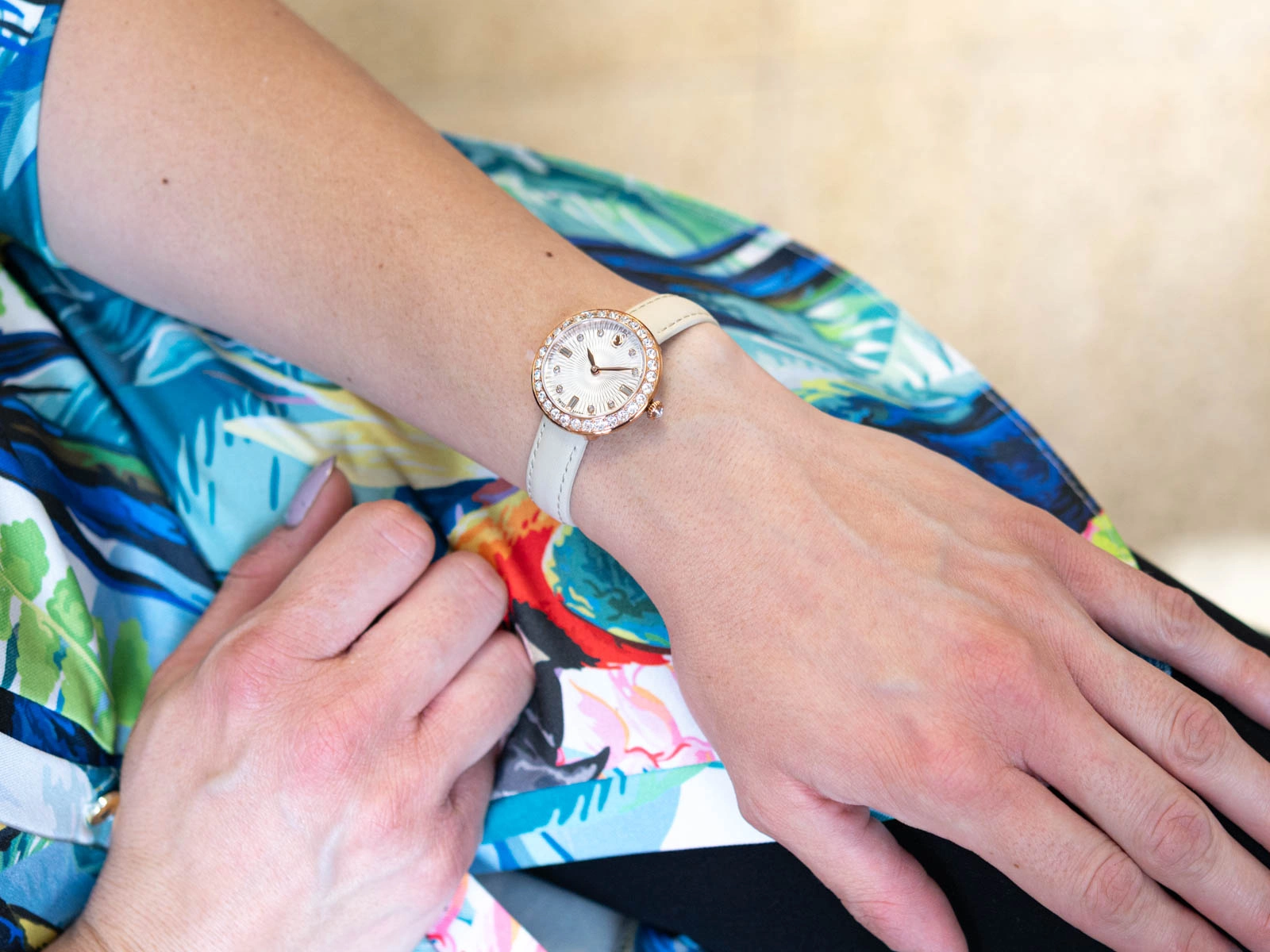 Swarovski 5672968 Certa to wyjątkowy zegarek, zaprojektowany z myślą o kobietach, które szukają subtelnej elegancji i biżuteryjnego wykończenia w codziennych dodatkach. Smukła sylwetka tego modelu przyciąga uwagę finezją detali, które płynnie łączą praktyczną funkcję odmierzania czasu z luksusową estetyką charakterystyczną dla marki Swarovski. Tarcza z dekoracyjnym wzorem guilloché urzeka głębią i delikatnością, a otaczające ją drobne, precyzyjnie oszlifowane kryształki dodają całości blasku, który wspaniale mieni się w świetle, podkreślając każdy ruch nadgarstka. Ten efektowny akcent tworzy wyjątkową grę światła, przywodzącą na myśl elegancję najwyższej klasy biżuterii.