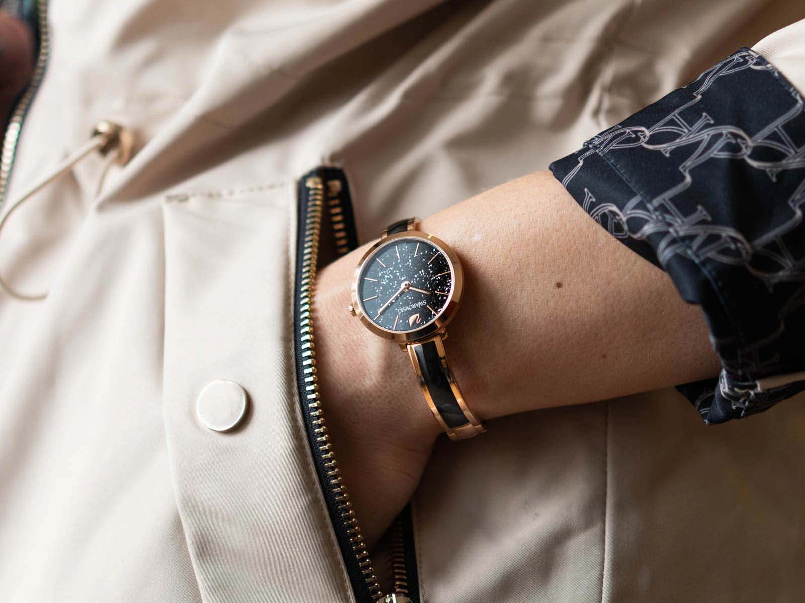 Każdy zegarek Swarovski to harmonijne połączenie blasku, precyzji i współczesnej elegancji. Kryształy, z których słynie marka, nadają klasycznym formom wyjątkowego charakteru subtelnie przyciągając wzrok i wprowadzając nutę luksusu do codziennych stylizacji. Niezależnie od okazji, zegarki te stanowią wyrafinowany akcent tak samo odpowiedni do pracy, jak i na wieczorne wyjście. To ponadczasowe dodatki, które urzekają nie tylko pięknem, ale i dziedzictwem marki z ponad 127-letnią historią rzemiosła. Wykonane z wysokiej jakości materiałów, takich jak stal szlachetna, włoska skóra czy emalia, łączą estetykę z funkcjonalnością — oferując m.in. wodoodporność i wygodne systemy wymiany pasków. Kolekcja obejmuje zarówno klasyczne modele na skórzanych paskach, jak i bardziej wyraziste propozycje z bransoletami zdobionymi kryształami w intensywnych kolorach. To stylowy i ponadczasowy dodatek, który sprawdzi się jako elegancki prezent lub wyraz osobistego stylu.