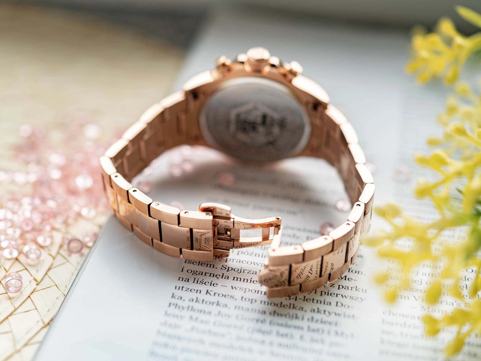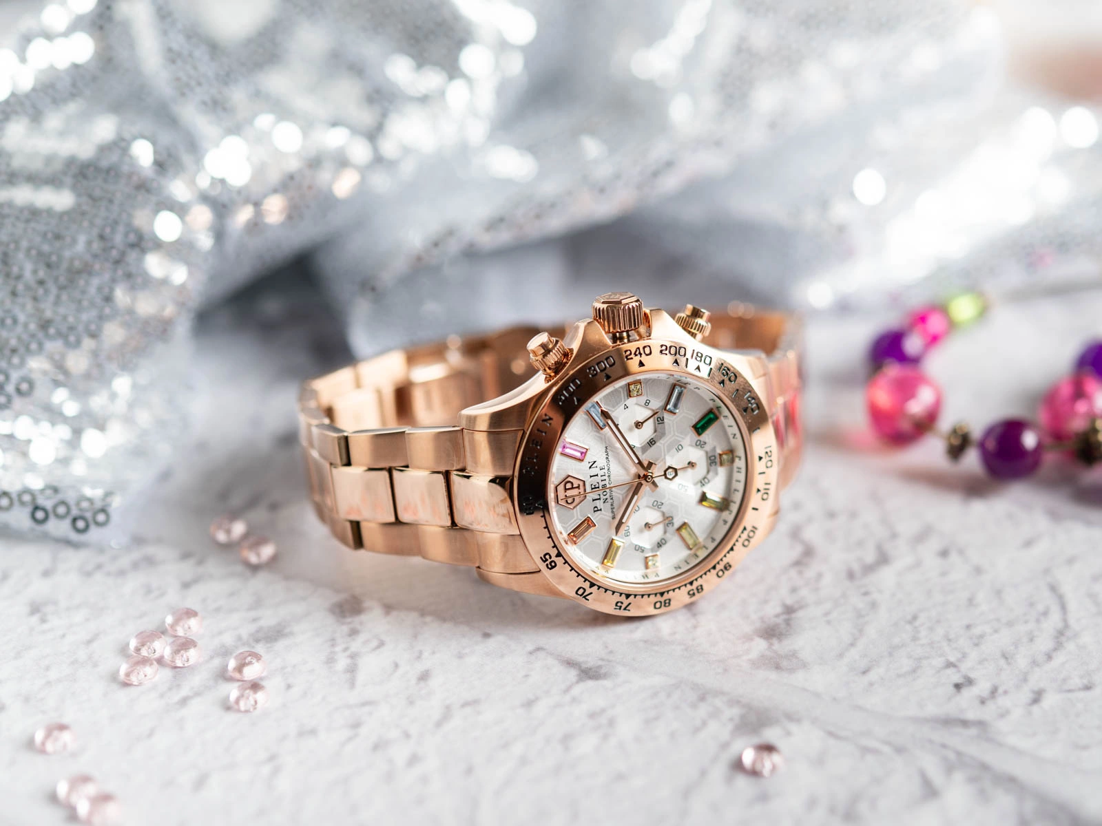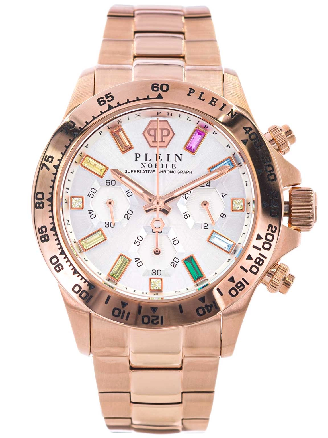 • Zegarek Philipp Plein PWSBA0323 rózowe złoto na bransolecie posiada funkcje stopera i neobrite.