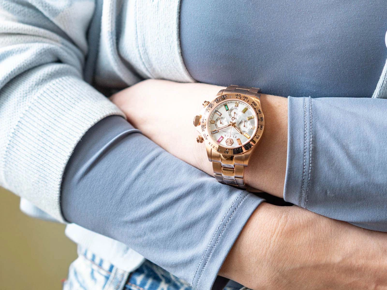 Zegarek oferuje więcej niż tylko styl – jego funkcjonalność to m.in. wskaźnik czasu 24-godzinnego oraz praktyczny stoper. Idealny zarówno do codziennego noszenia, jak i jako uzupełnienie eleganckiej stylizacji. Bransoleta ze stali nierdzewnej w modnym odcieniu różowego złota została wyposażona w motylkowe zapięcie, które gwarantuje komfort i bezpieczeństwo użytkowania. Model PWSBA0323 to propozycja dla kobiet, które lubią łączyć modę z funkcjonalnością i nie boją się wyróżniać. Zegarek zapakowany jest w designerskie pudełko w kształcie czaszki – ikoniczny element dla marki Philipp Plein, który dodaje produktowi unikalności i czyni go idealnym prezentem dla kogoś wyjątkowego – lub dla siebie samej.