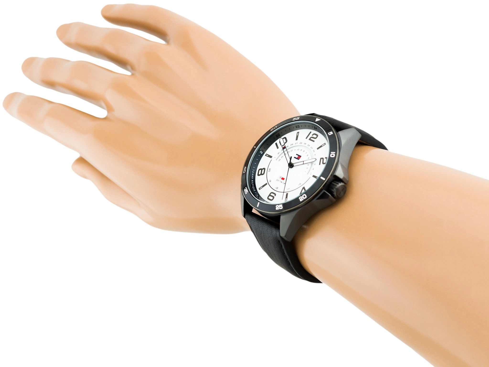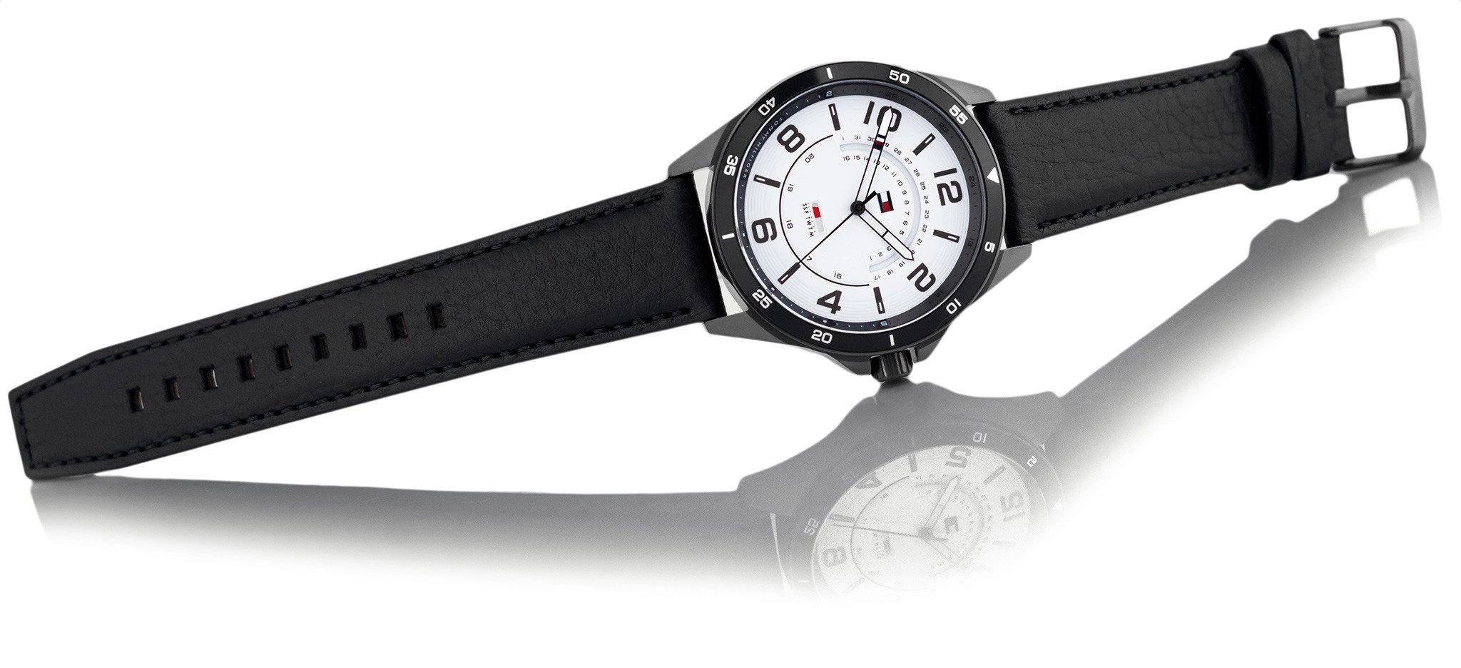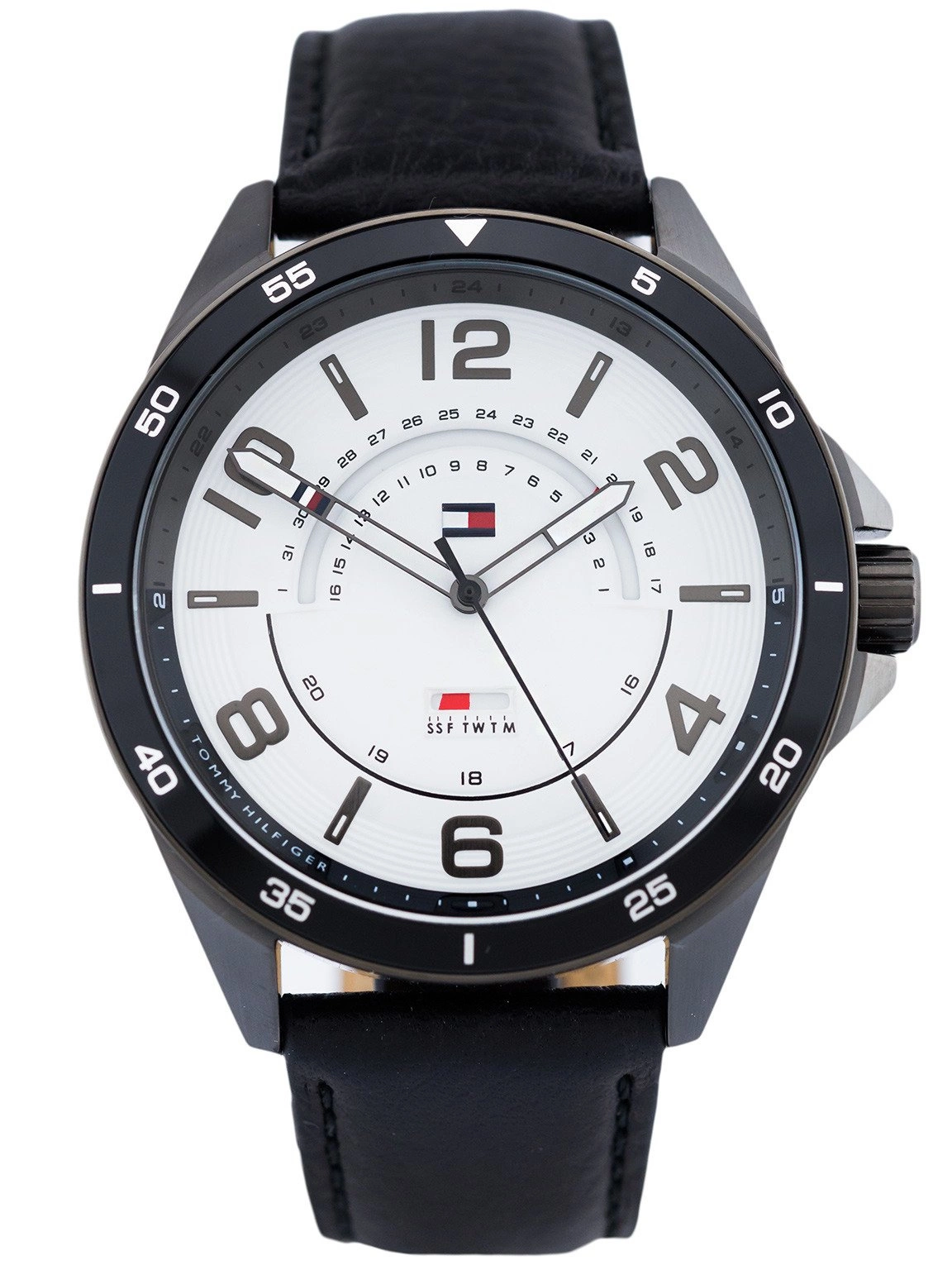 - Zegarek Męski Tommy Hilfiger 1791396 czarny na pasku, posiada funkcję datownika.