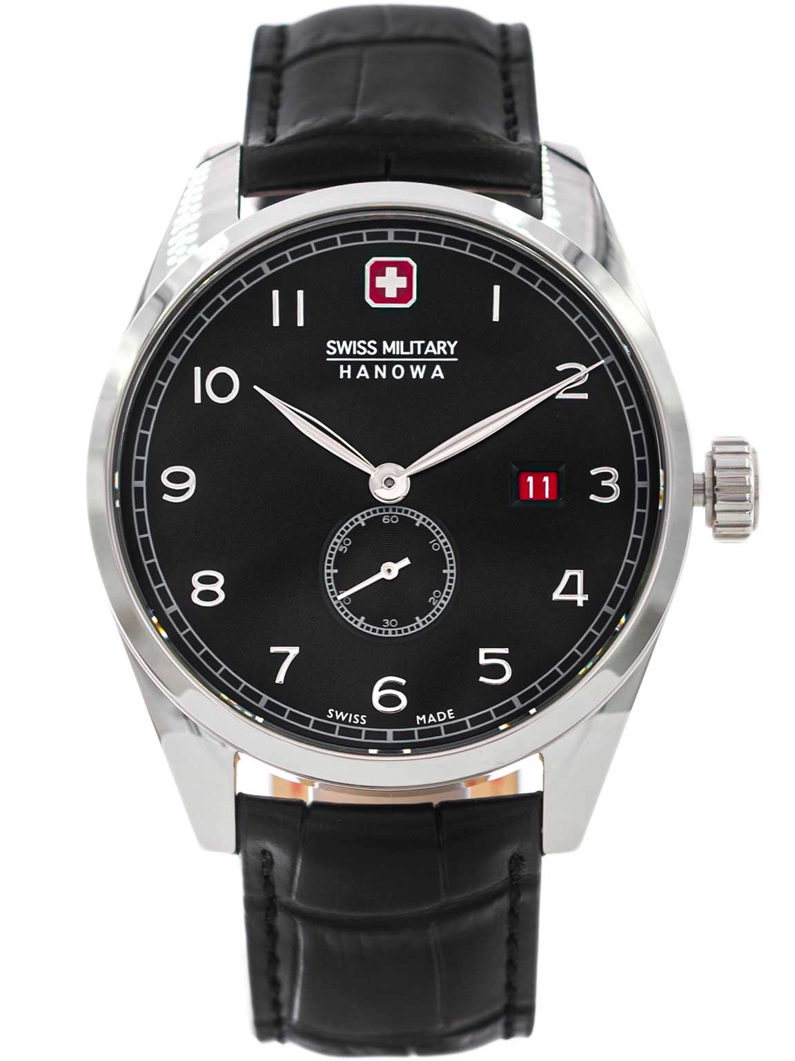 • Wodoszczelny Zegarek Męski Swiss Military Hanowa SMWGB0000703 czarny na pasku. Posiada funkcję datownika.
