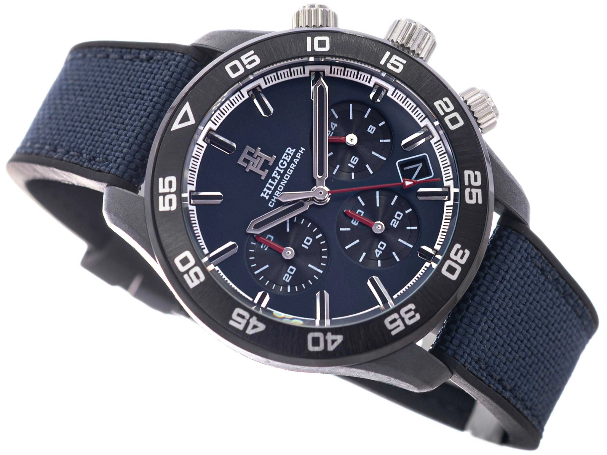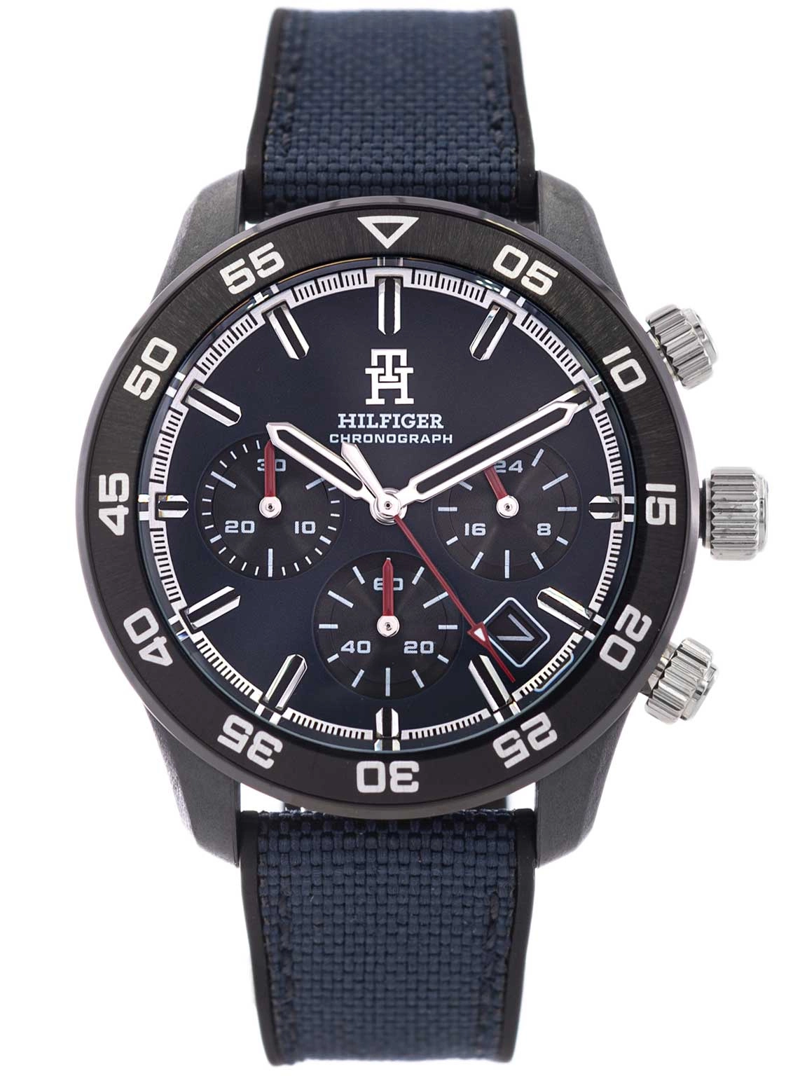 • Zegarek Męski Tommy Hilfiger 1792183 granatowy na pasku, posiada funkcję datownika, stopera .