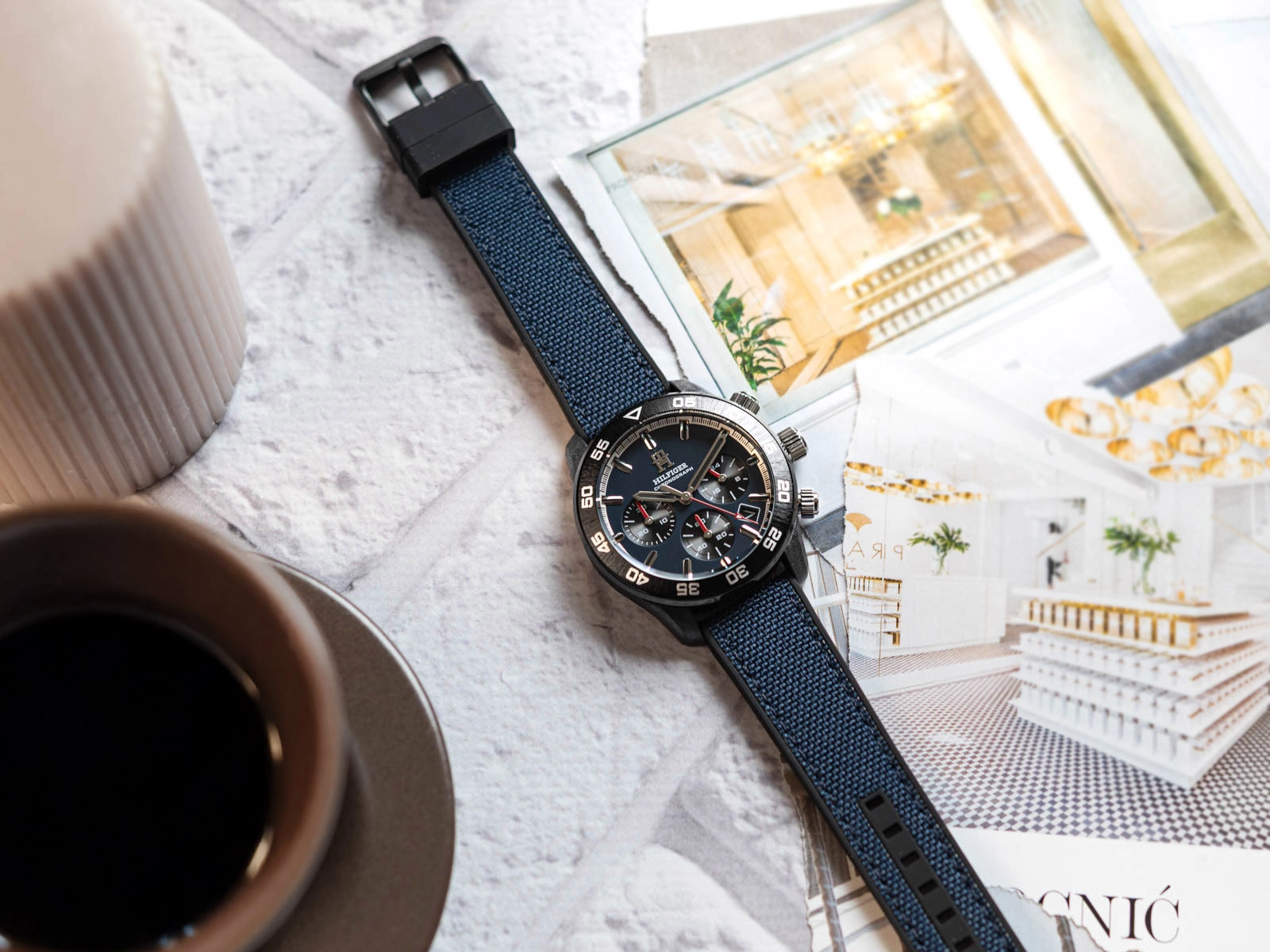 Tommy Hilfiger TH85 Chronograph 1792183 to nowoczesny zegarek męski, który łączy klasyczną elegancję z praktyczną funkcjonalnością. Model ten wyposażony jest w solidną kopertę wykonaną z trwałego karbonu. Tarczę chroni mineralne szkło o podwyższonej odporności na zarysowania. Granatowy pasek z połączenia tkaniny i tworzywa sztucznego zapewnia wygodę noszenia i trwałość, a klasyczne zapięcie na sprzączkę umożliwia precyzyjne dopasowanie do nadgarstka. Na tarczy umieszczono trzy sub-tarcze chronografu umożliwiające dokładny pomiar czasu, wskaźnik 24-godzinny oraz datownik pokazujący dzień miesiąca. Wskazówki i indeksy w kontrastujących kolorach zapewniają wysoką czytelność nawet w słabym oświetleniu. Zegarek napędzany jest precyzyjnym mechanizmem kwarcowym, który działa niezawodnie i nie wymaga codziennego nakręcania.  Całość zapakowana jest w eleganckie, firmowe pudełko sygnowane logo Tommy Hilfiger, co czyni ten zegarek idealnym pomysłem na prezent. TH85 Chronograph to doskonała propozycja dla mężczyzn ceniących styl, niezawodność oraz wysoką jakość wykonania.