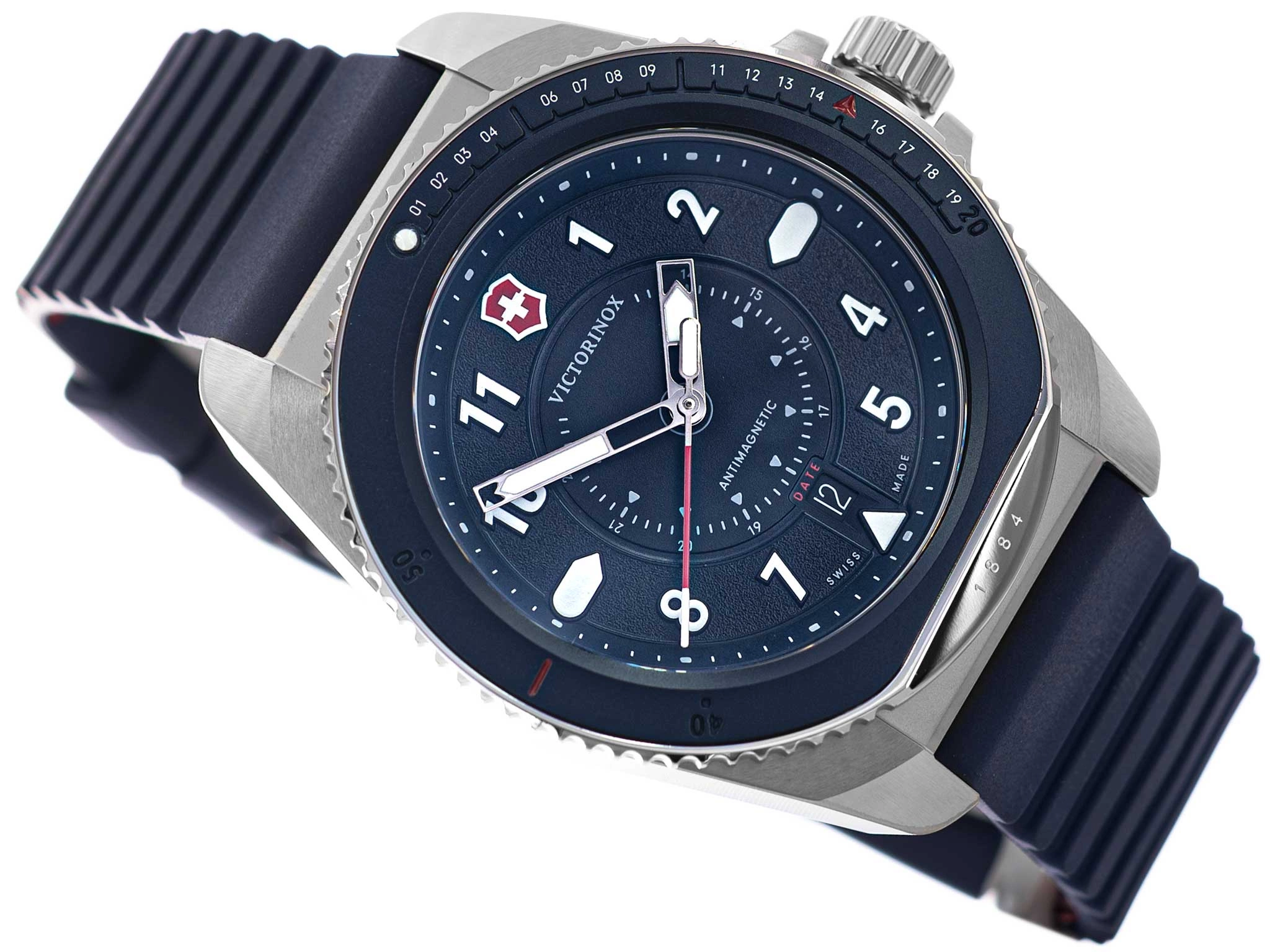 - Wodoszczelny Zegarek Męski Victorinox Journey 1884 241975 granatowy na pasku. Posiada funkcję datownika oraz neobrite.