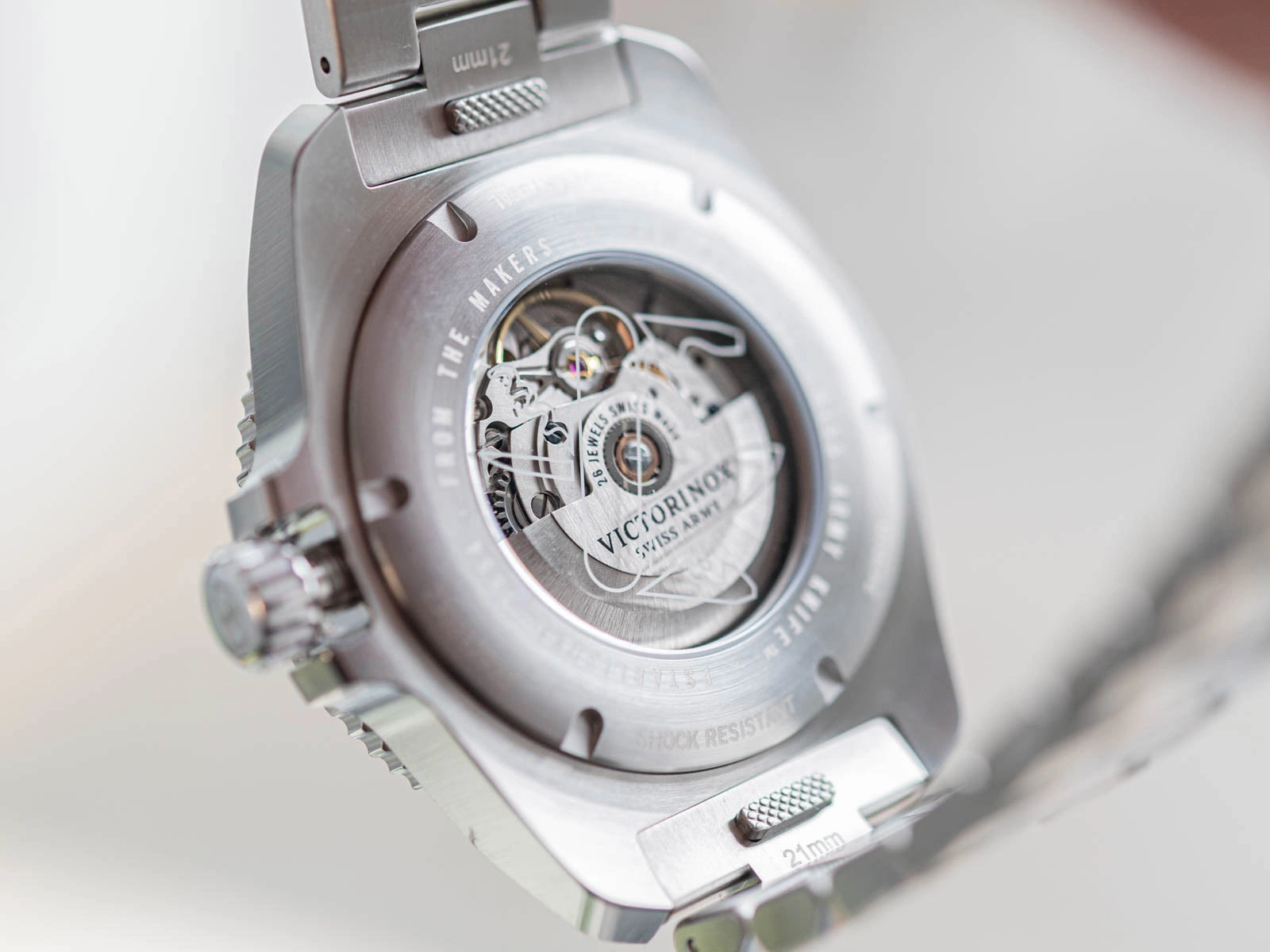 Sercem modelu jest niezawodny, szwajcarski mechanizm automatyczny SELLITA SW200-1 z 26 kamieniami łożyskującymi. Działa on w oparciu o ruch nadgarstka, eliminując konieczność wymiany baterii. Tarcza chroniona jest przez odporne na zarysowania szkło szafirowe z powłoką antyrefleksyjną, które zapewnia doskonałą przejrzystość niezależnie od warunków oświetleniowych. Zegarek może poszczycić się wodoszczelnością na poziomie 200m, co czyni go idealnym towarzyszem podczas sportów wodnych i wypraw w trudnych warunkach. Całości dopełnia trwała stalowa bransoleta z możliwością szybkiej samodzielnej wymiany – bez konieczności wizyty u zegarmistrza. Model Journey 1884 dostarczany jest w eleganckim opakowaniu sygnowanym logo Victorinox, dzięki czemu świetnie sprawdzi się również jako prezent dla miłośnika przygód i wysokiej jakości zegarków.