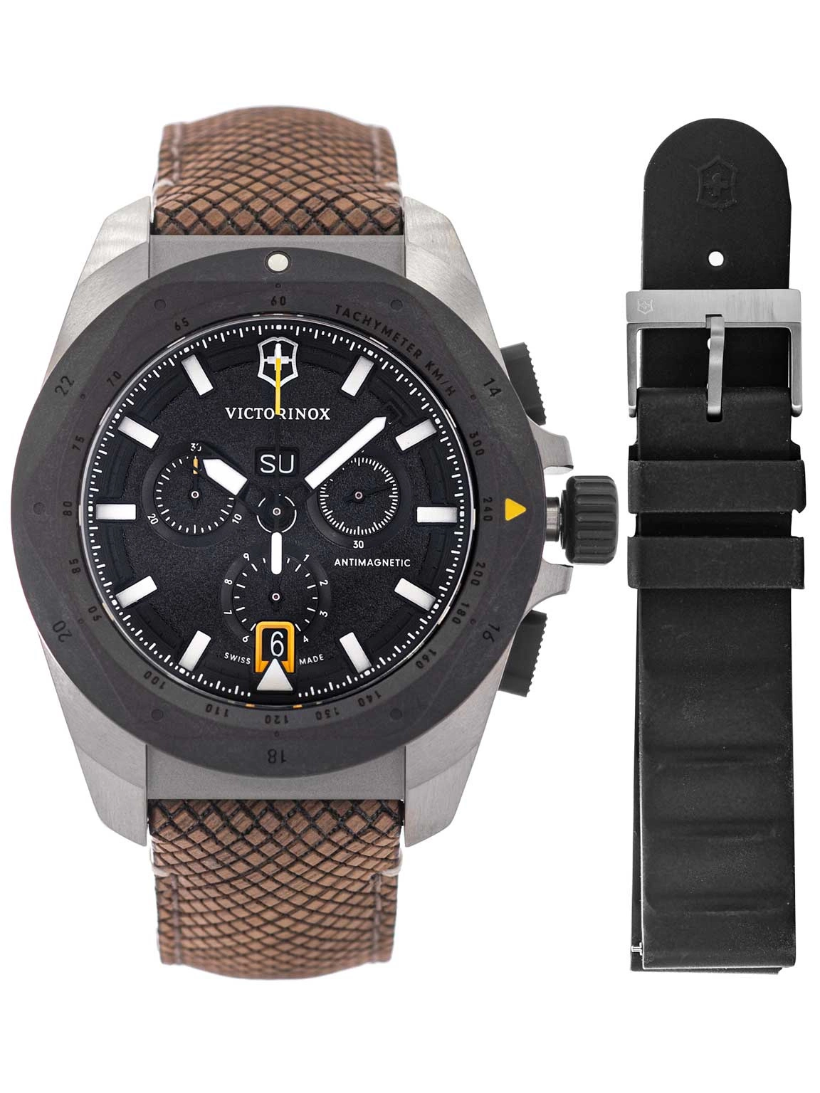 - Wodoszczelny Zegarek Męski Victorinox 241988.1 brązowy na pasku. Posiada funkcję datownika, chronografu oraz neobrite.